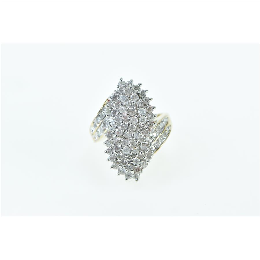 10K 2.40 Ctw Diamond Vintage Freeform Cluster Yellow Gold Ring, Size 7