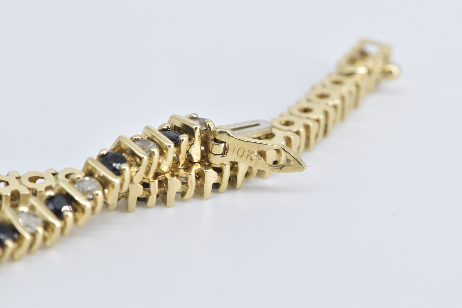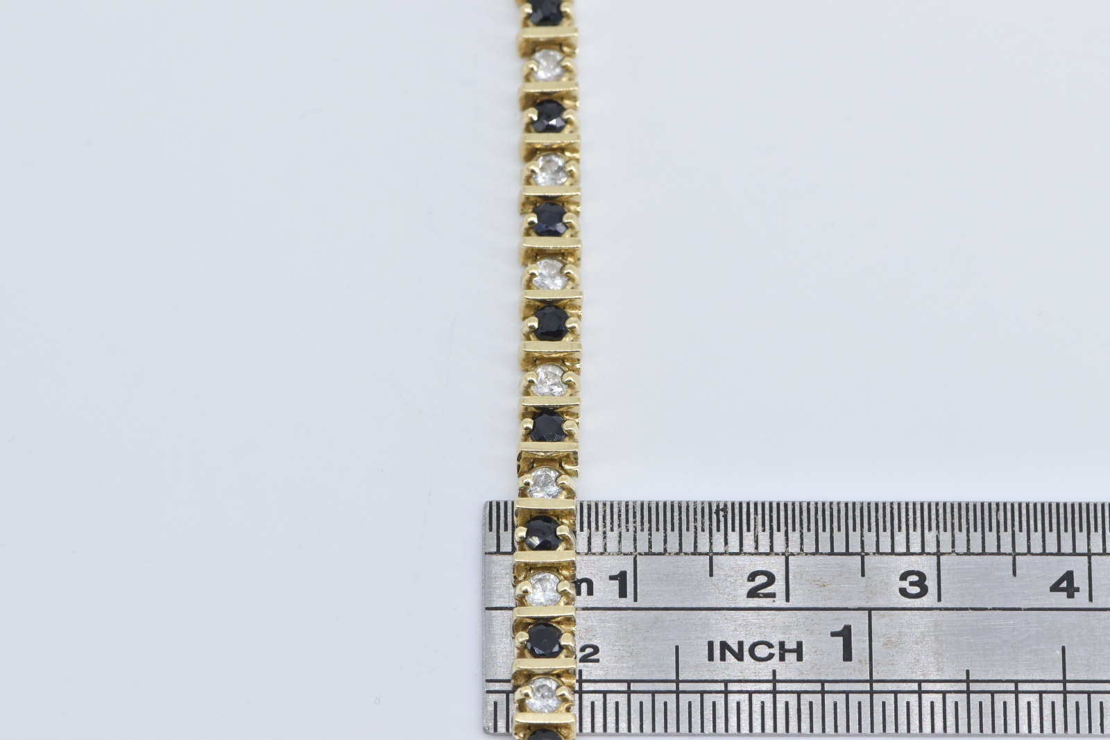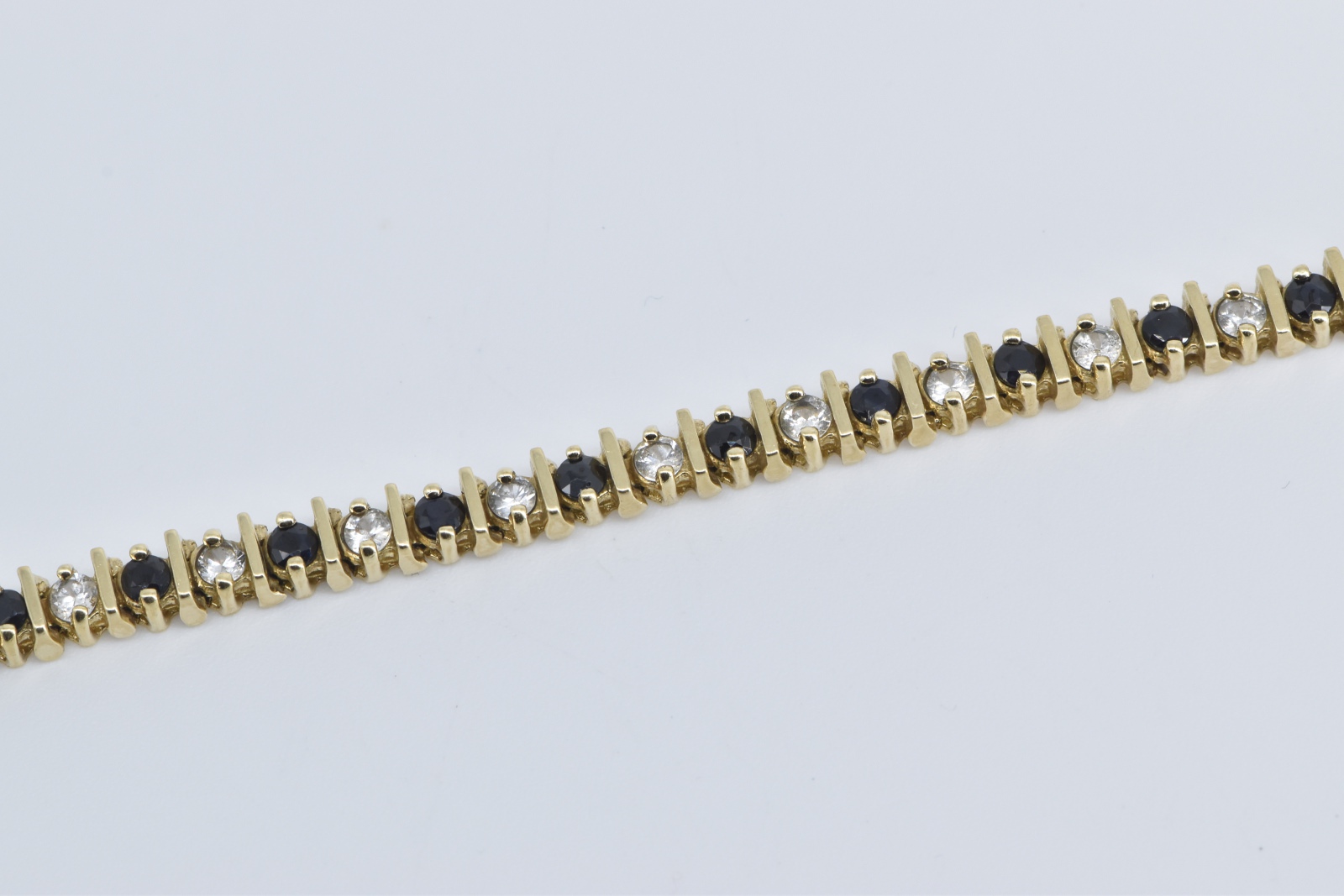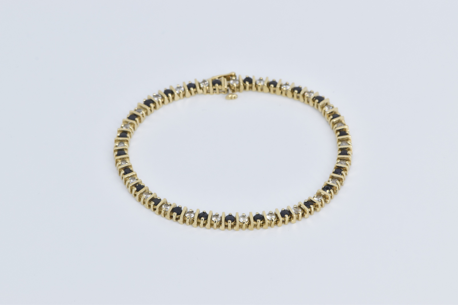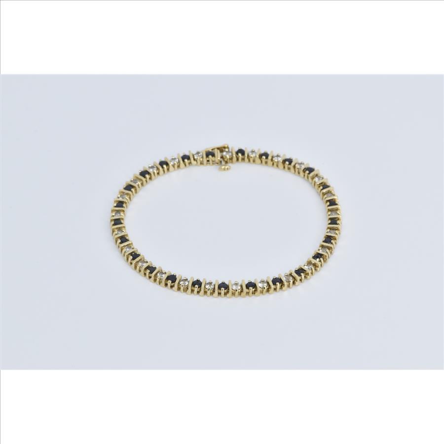 Item:  10K 2.50 Ctw Natural White Blue Sapphire Tennis Yellow Gold Bracelet 7.25"
