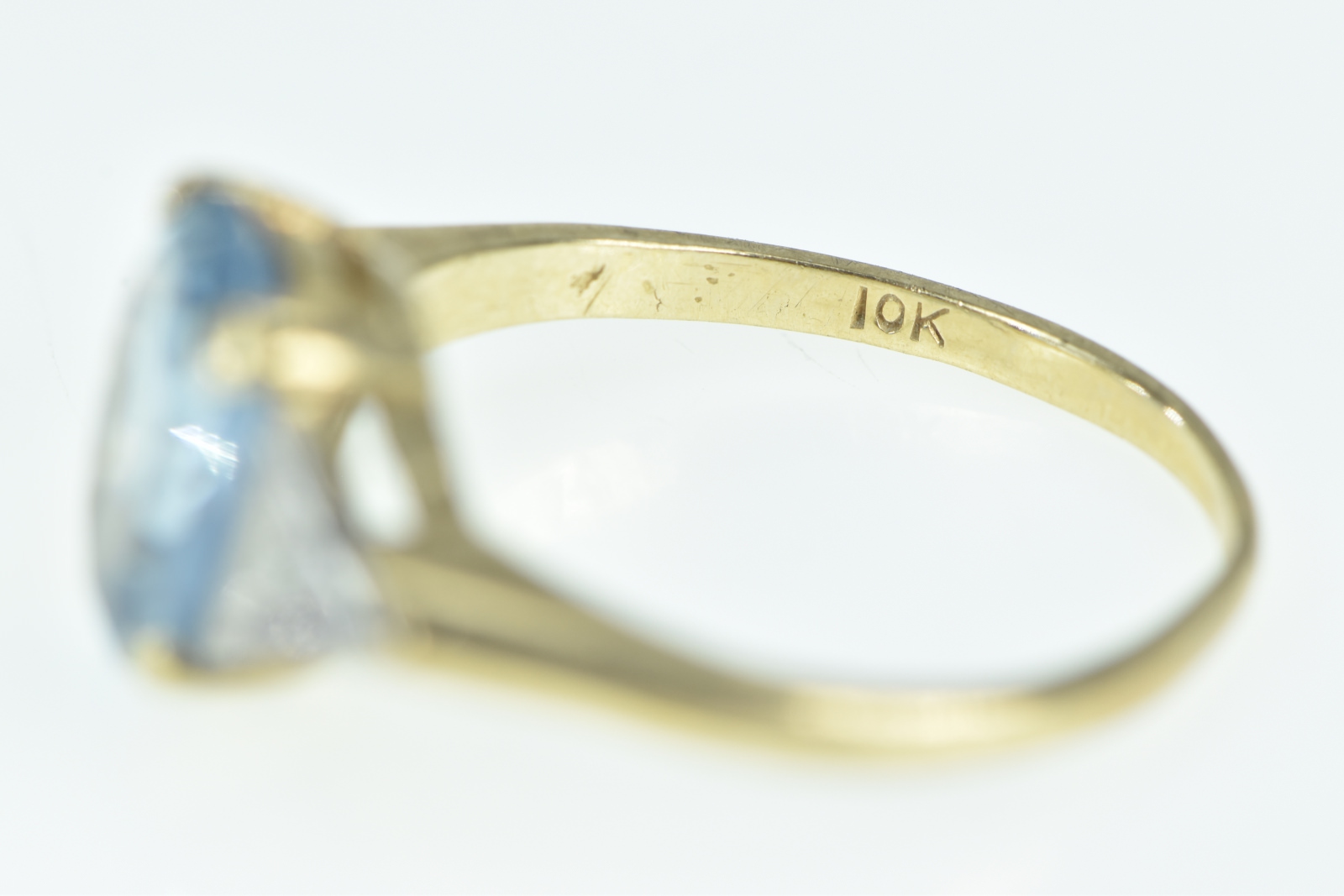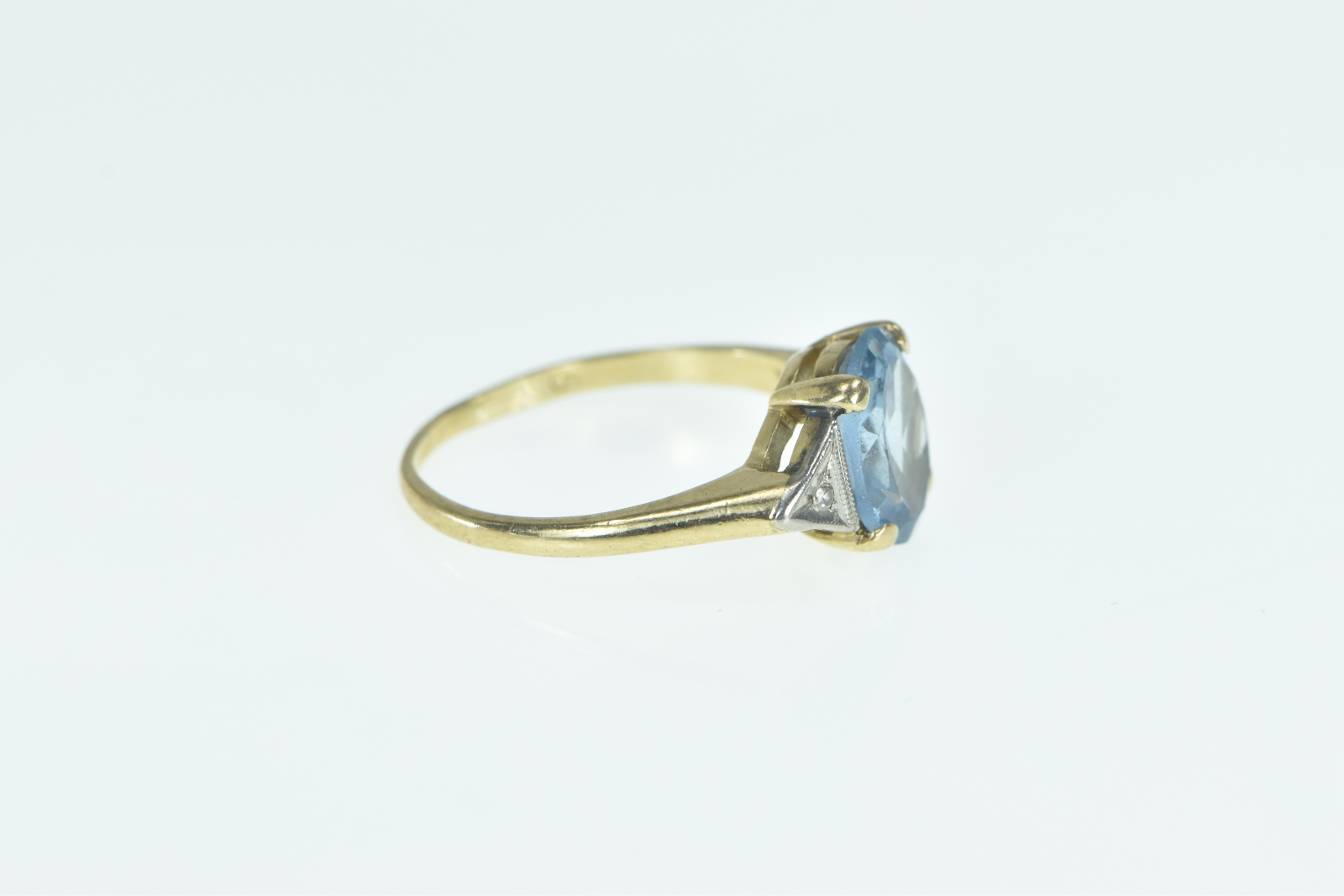 10K Art Deco Blue Topaz Diamond Statement Yellow Gold Ring, Size 6.75