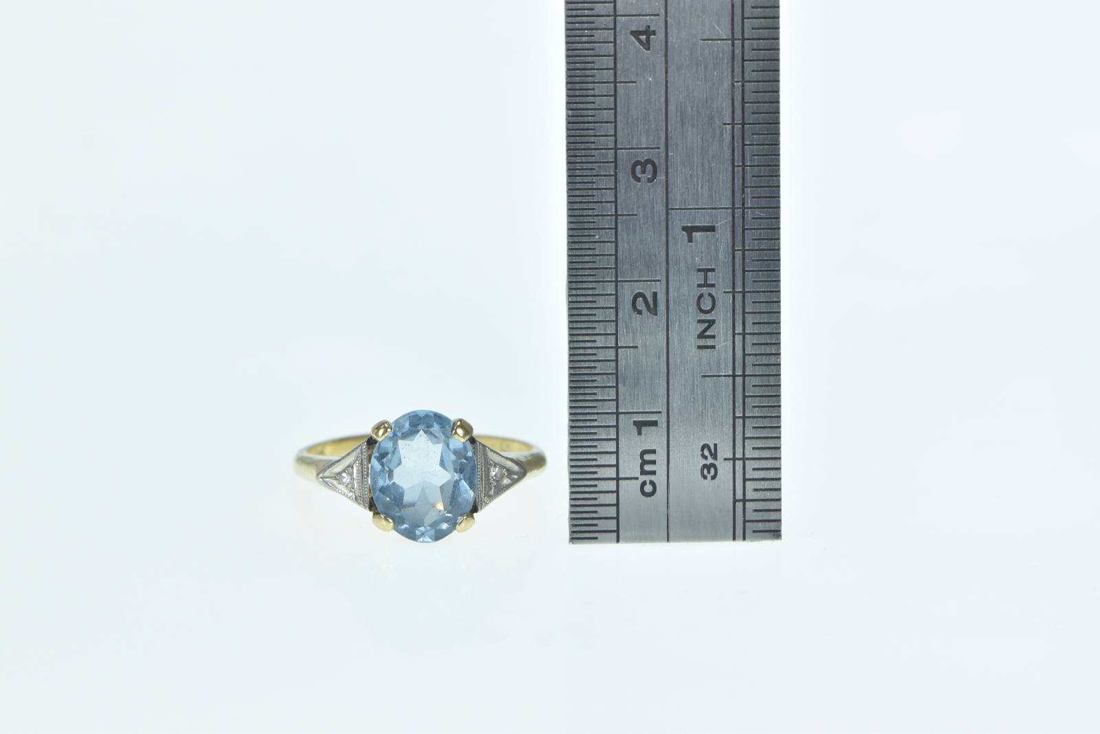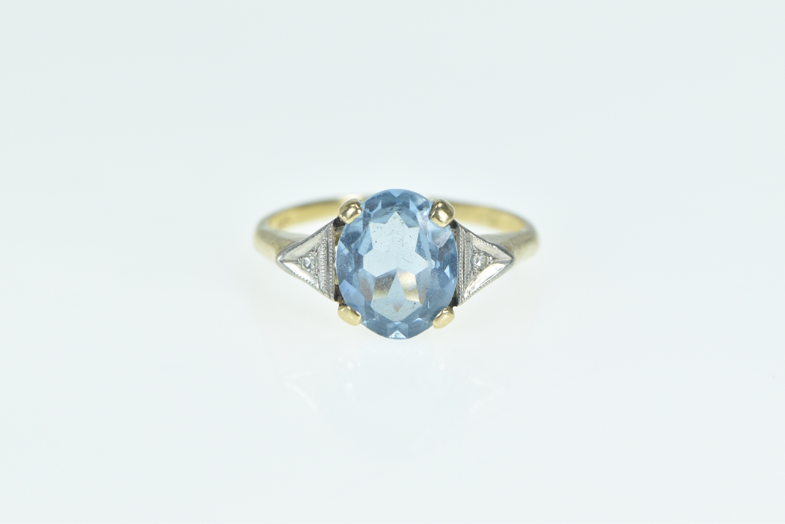 Item:  10K Art Deco Blue Topaz Diamond Statement Yellow Gold Ring, Size 6.75