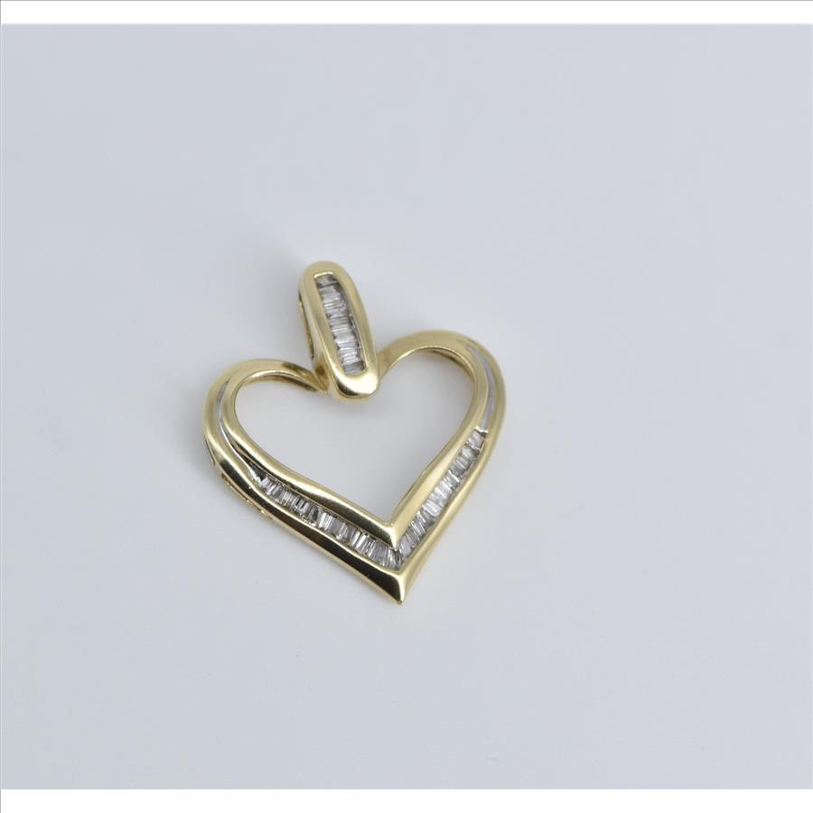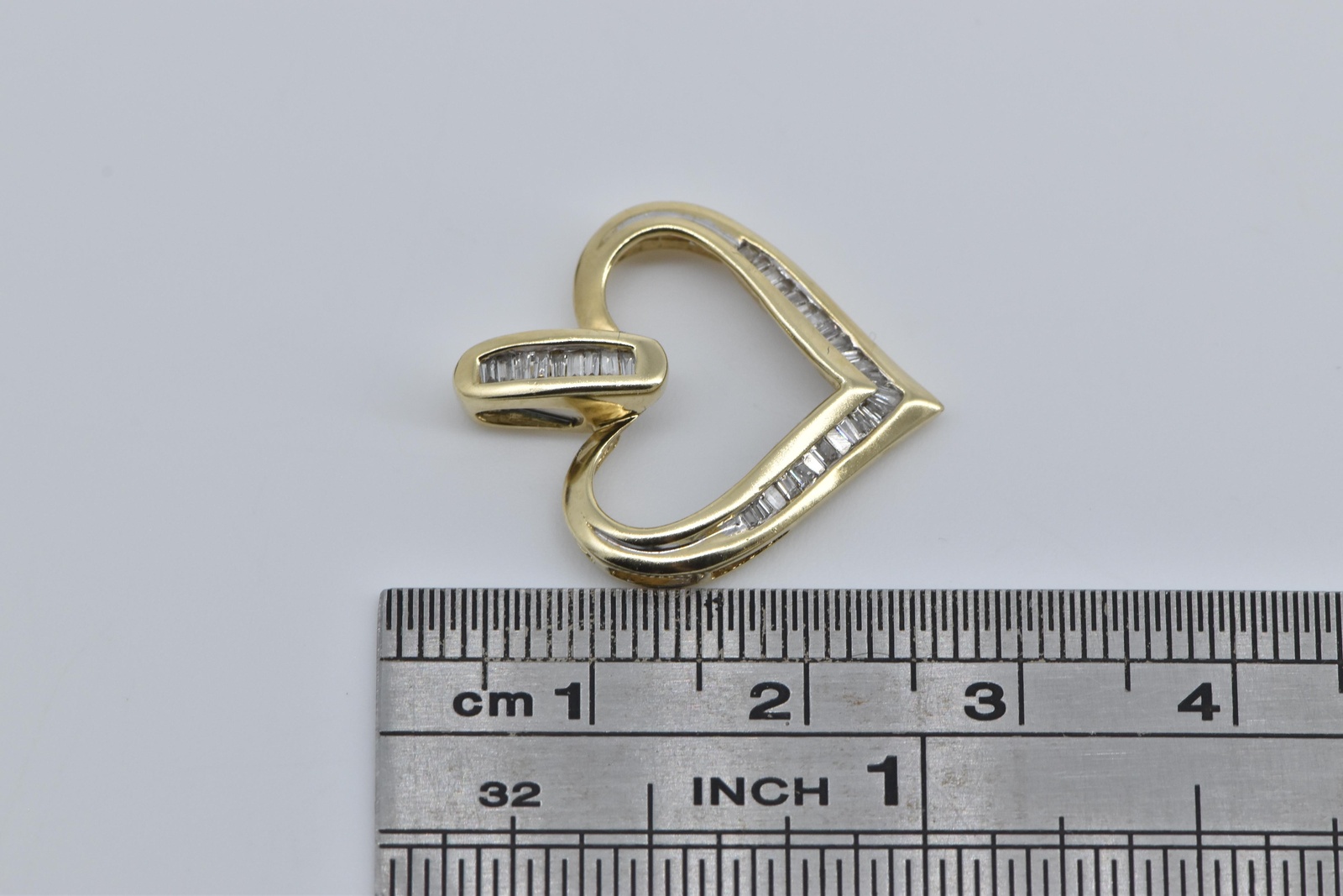 Item:  10K Baguette Diamond Heart Love Symbol Yellow Gold Pendant
