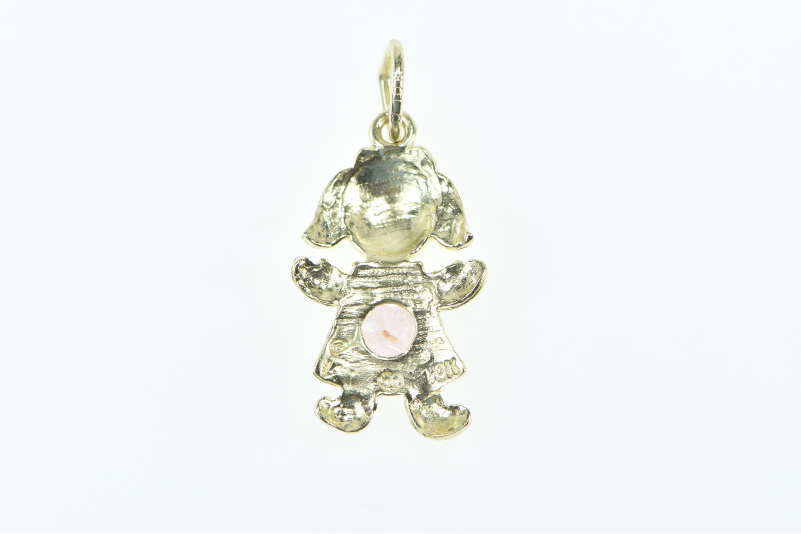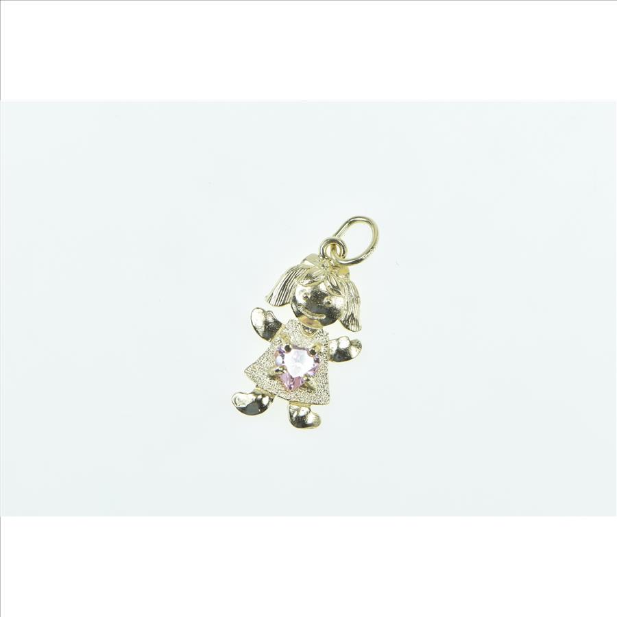 Item:  10K Birthstone Baby Girl August Pink CZ Yellow Gold Charm/Pendant