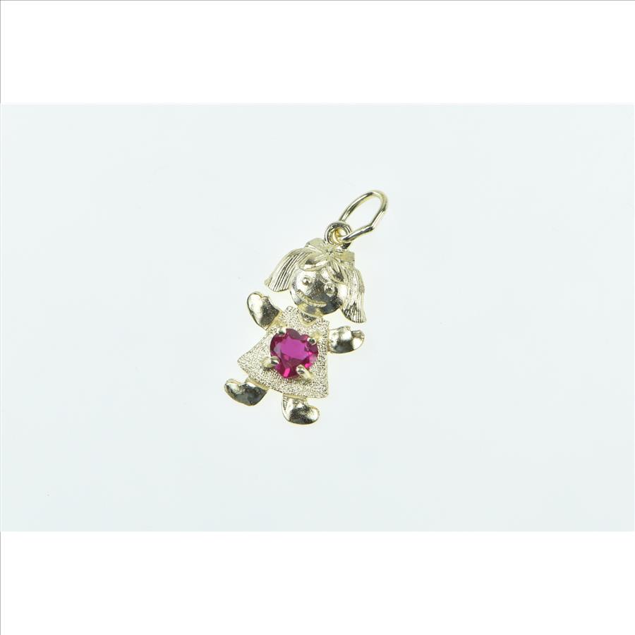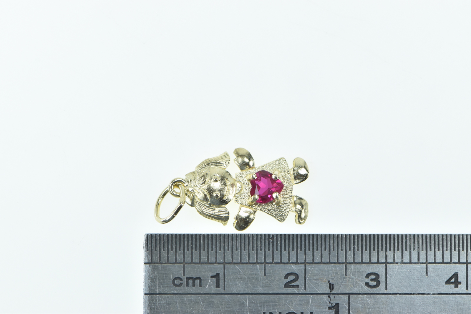 Item:  10K Birthstone Baby Girl July Sim. Ruby Daughter Yellow Gold Charm/Pendant