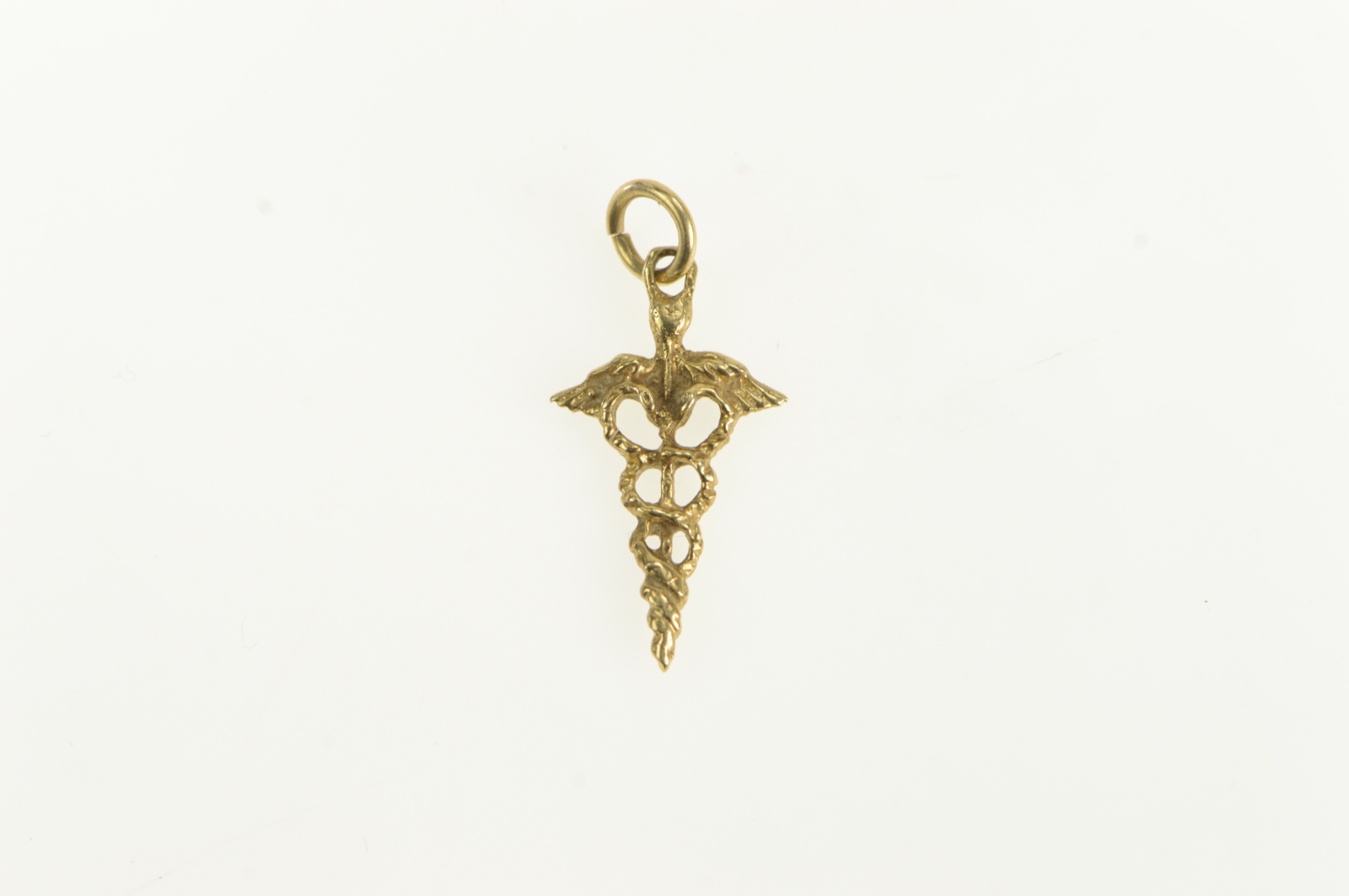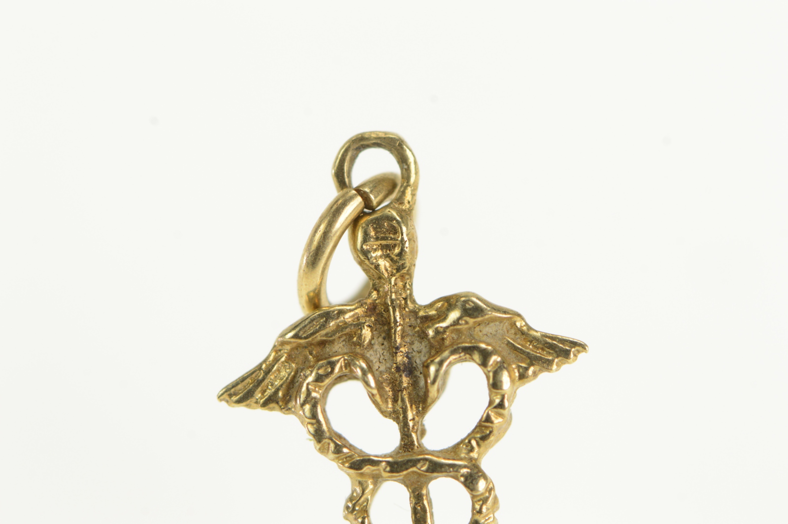 Item:  10K Caduceus Health Medicine Symbol Doctor RN Yellow Gold Charm/Pendant