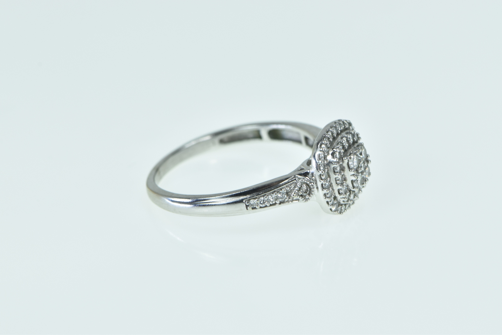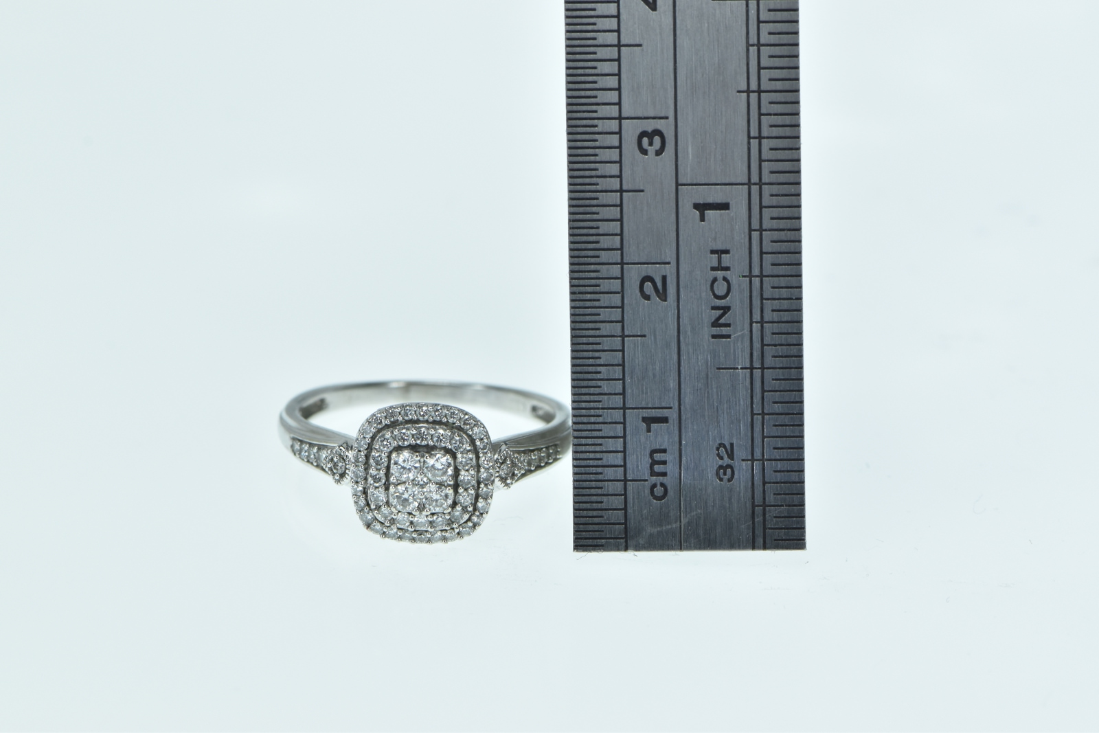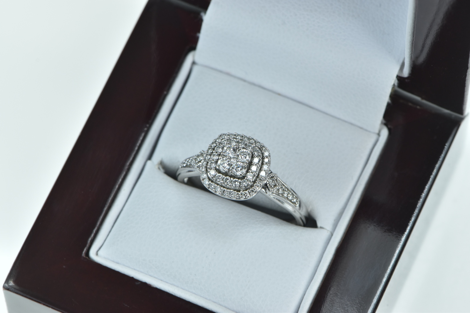 Item:  10K Diamond Cluster Halo Diamond Engagement White Gold Ring, Size 8