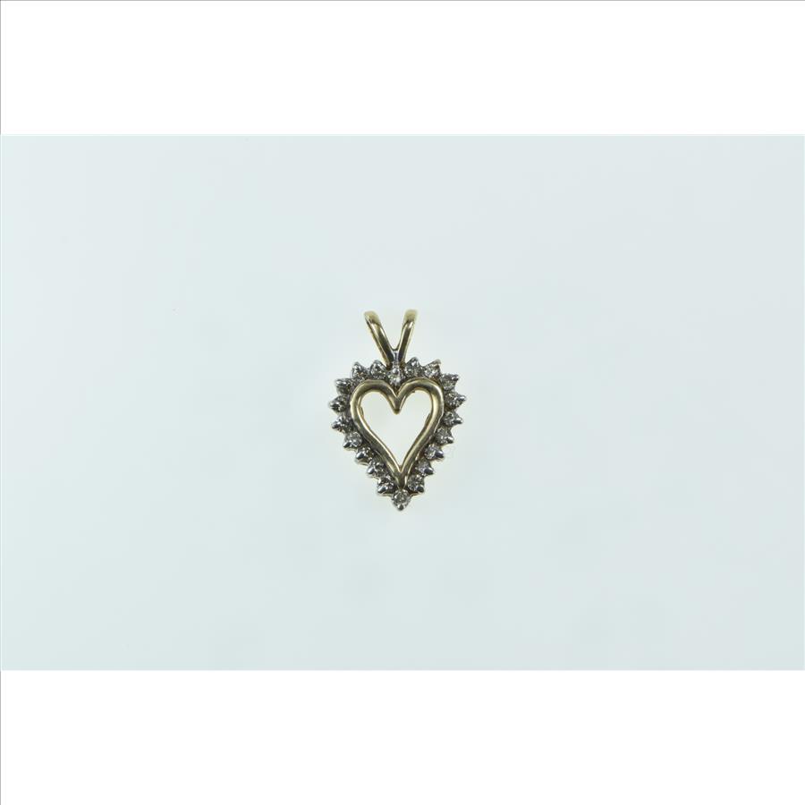 10K Diamond Heart Classic Love Symbol Vintage Yellow Gold Pendant