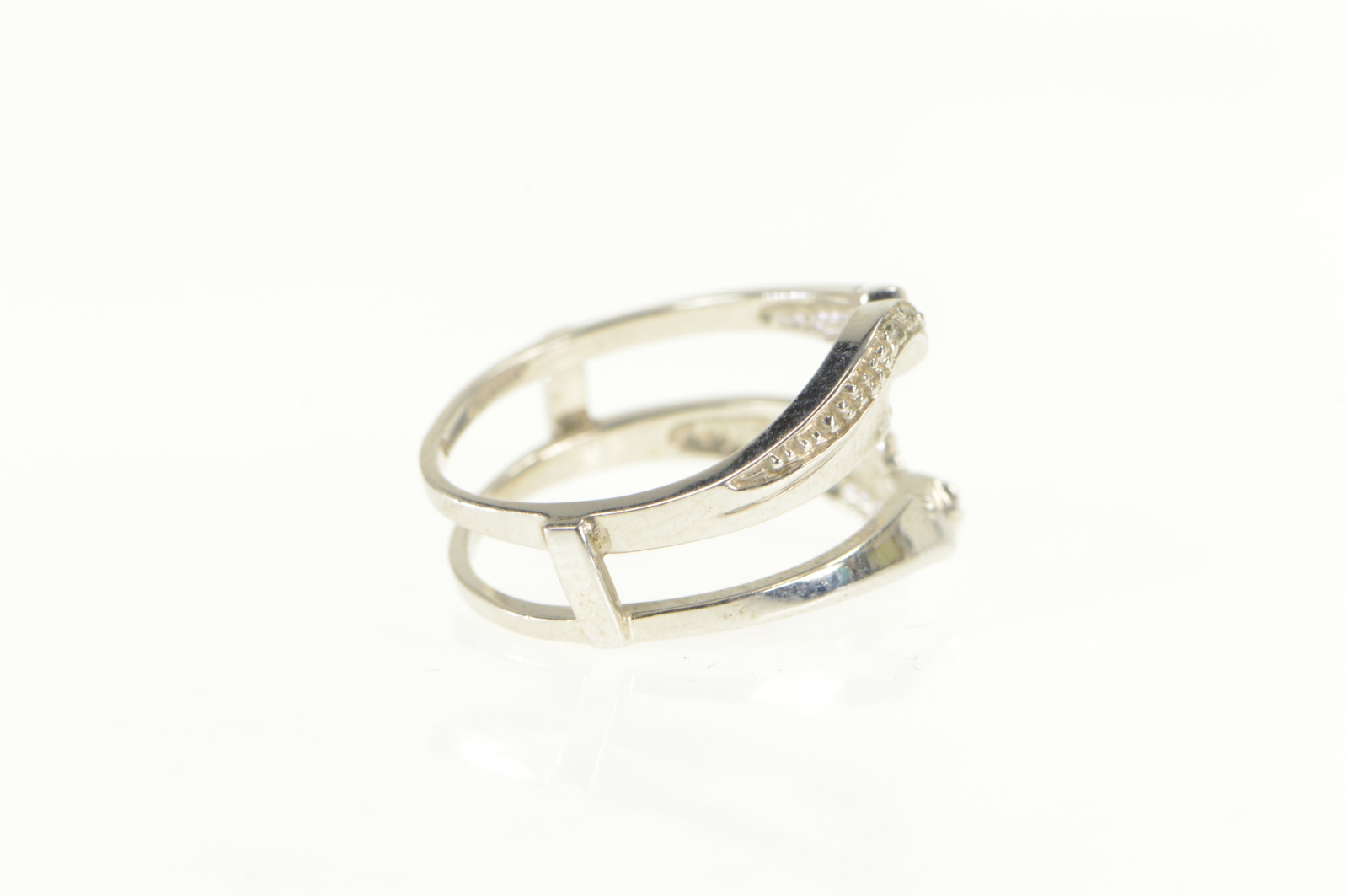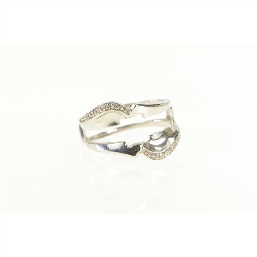 Item:  10K Diamond Inset Wrap Wedding Band Guard White Gold Ring, Size 6.75
