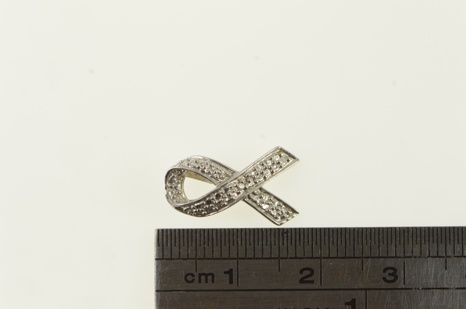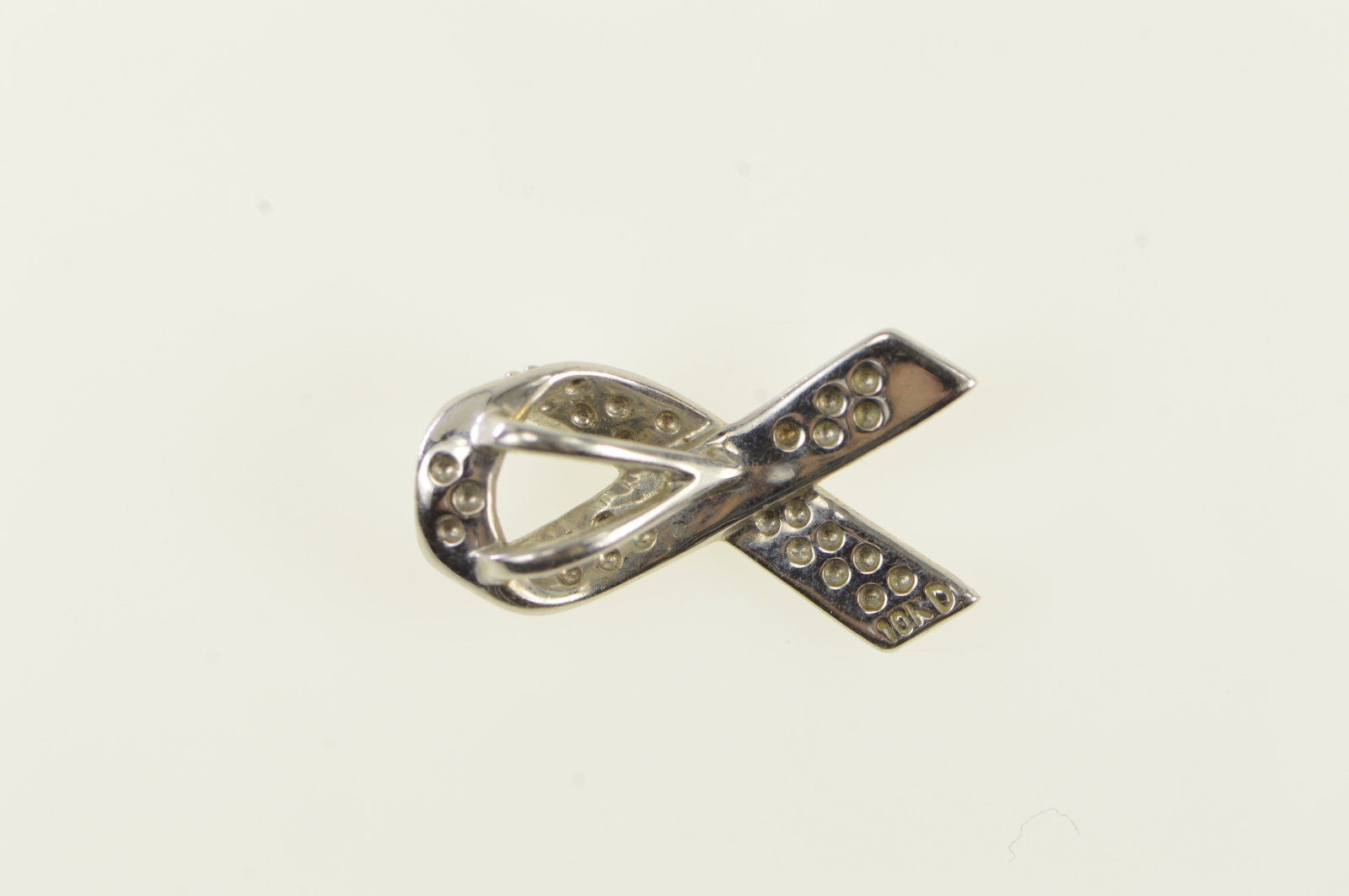 10K Diamond Ribbon Bow Memory Awareness White Gold Pendant