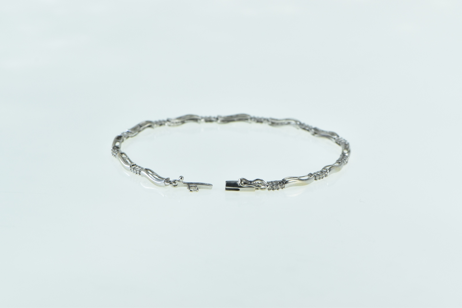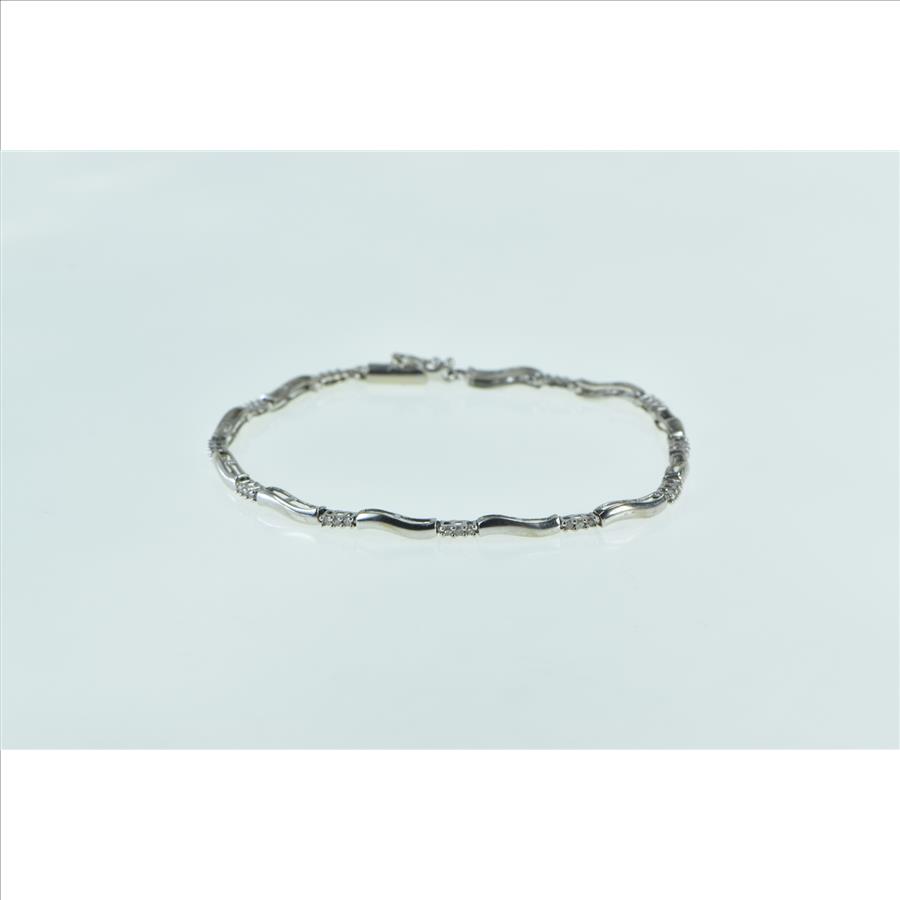 Item:  10K Diamond Wavy Bar Link Statement Chain White Gold Bracelet 7..25"