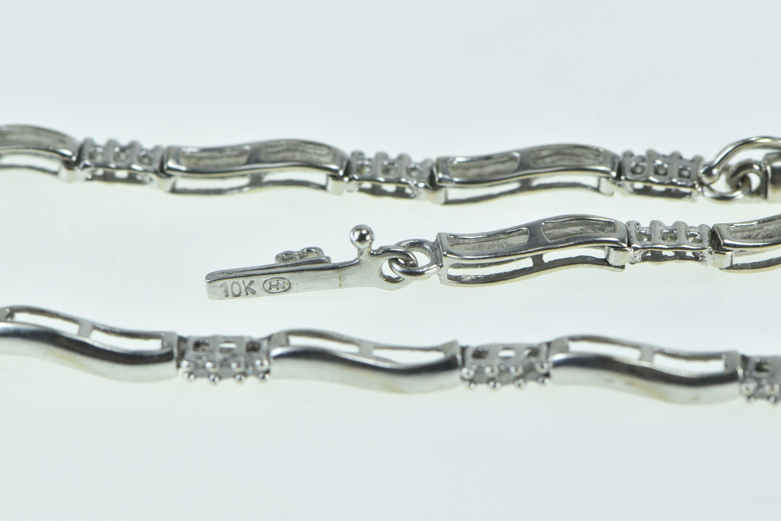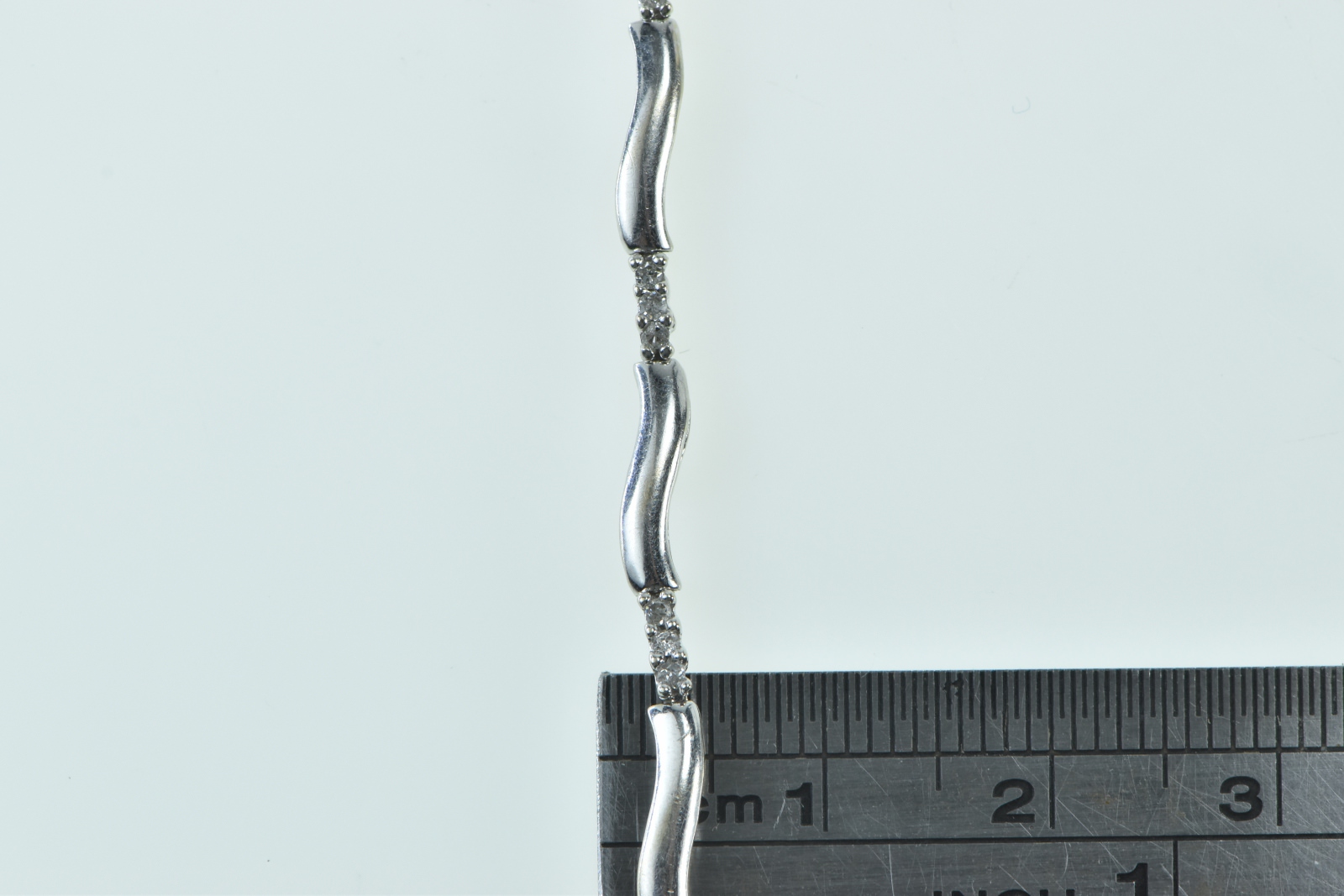 10K Diamond Wavy Bar Link Statement Chain White Gold Bracelet 7..25"