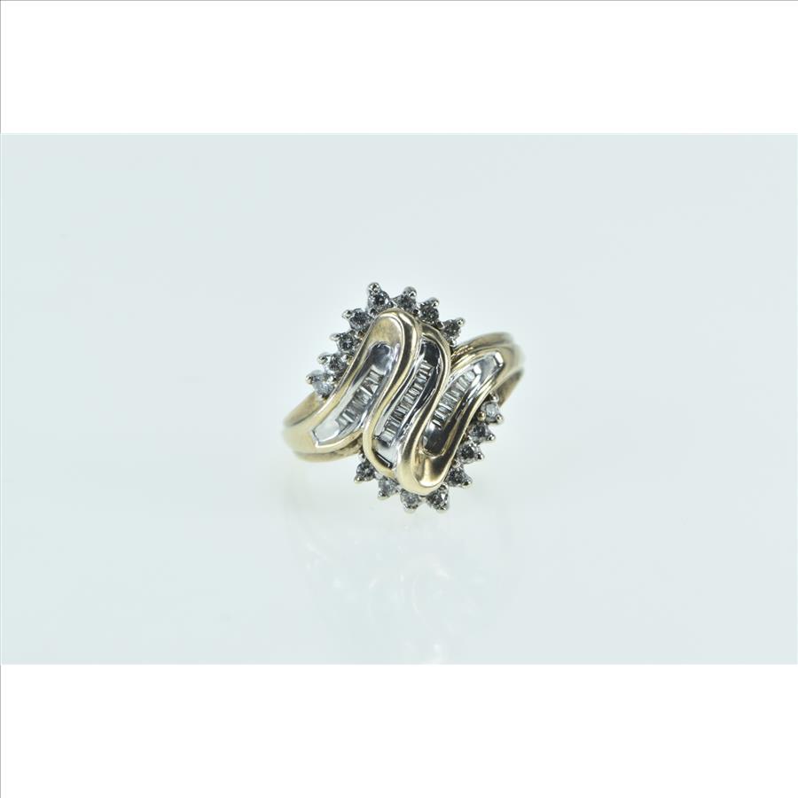 10K Diamond Zig Zag Freeform Cluster Bypass Yellow Gold Ring, Size 7
