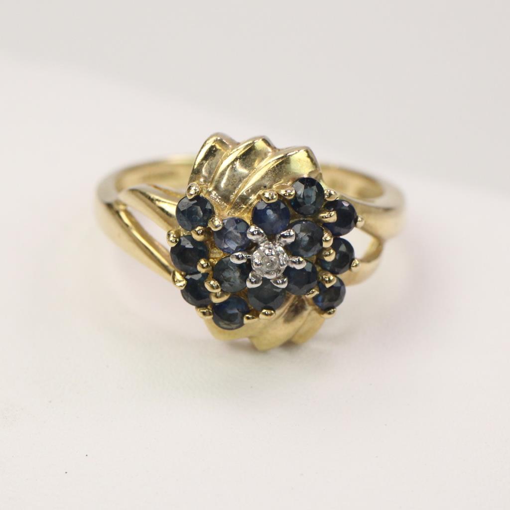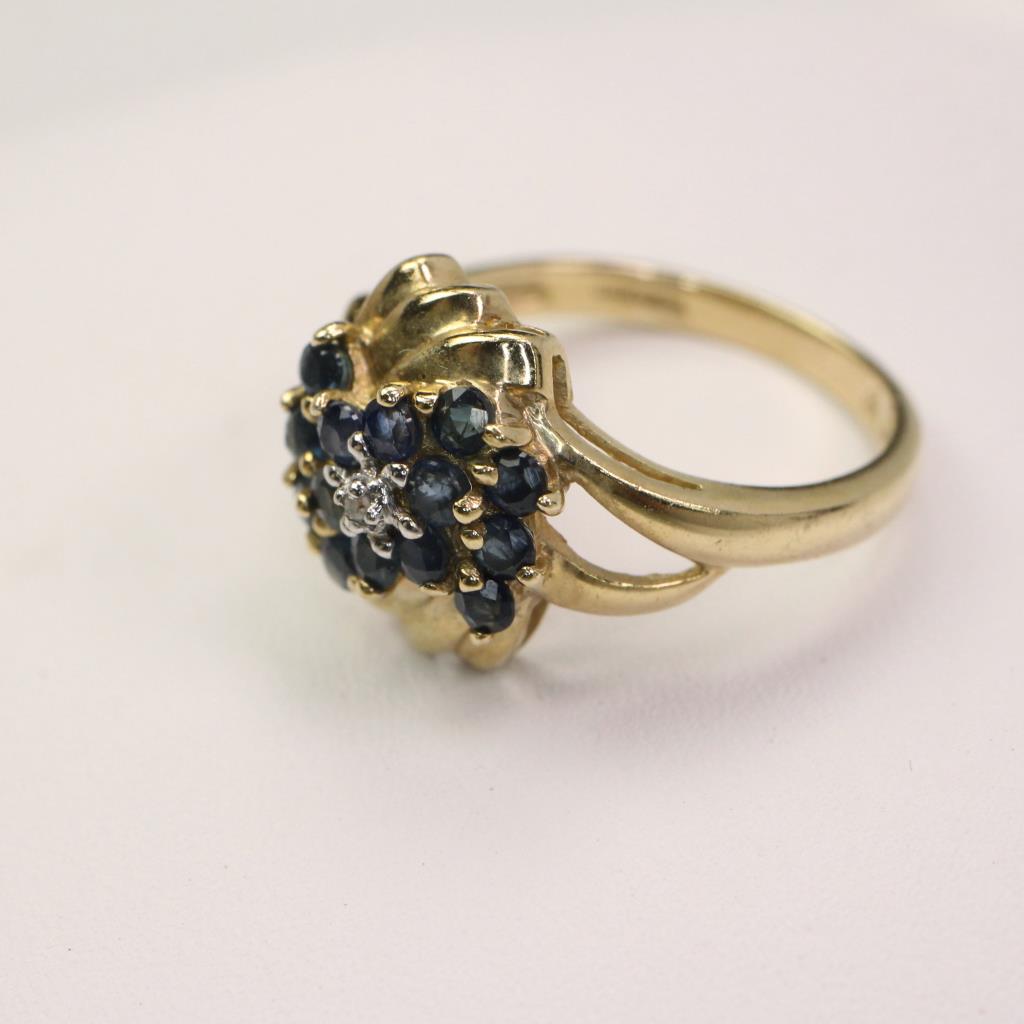10k Gold Diamond Blue Stone Ring