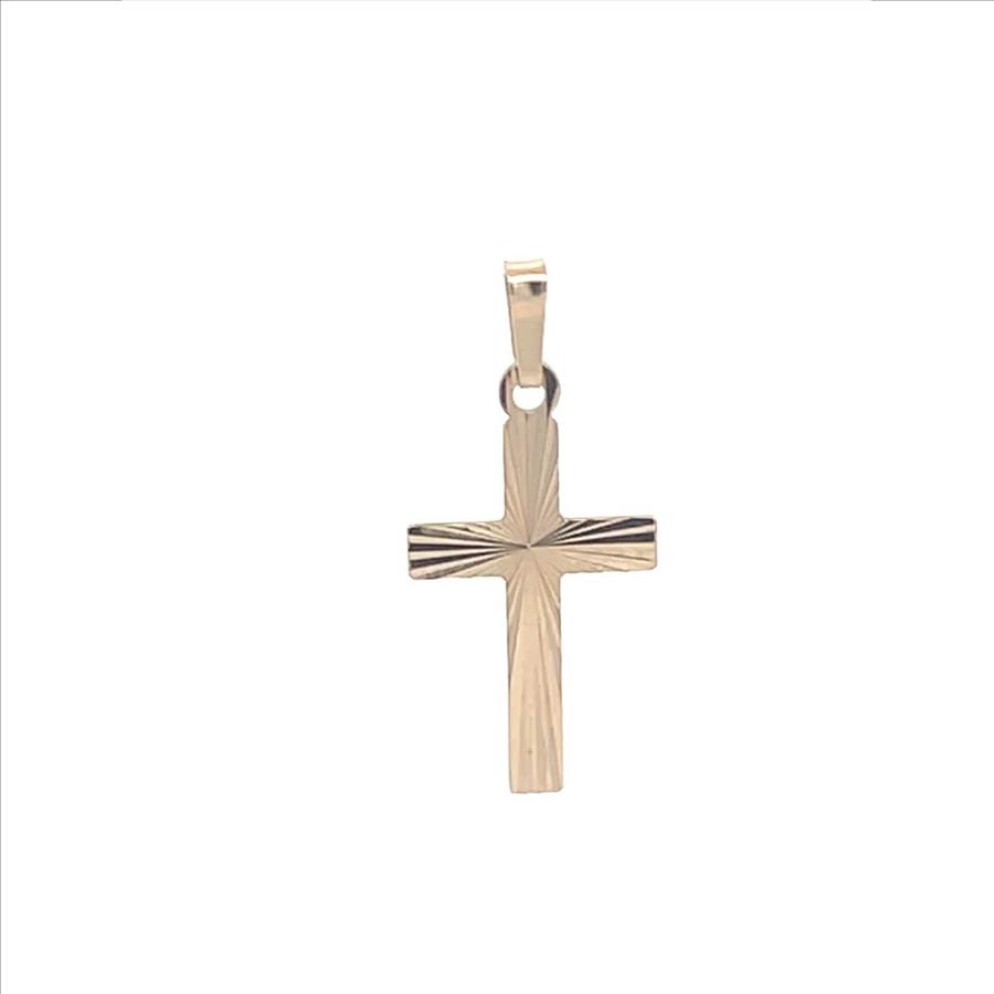 10K Grooved Cross Christian Faith Symbol Yellow Gold Pendant