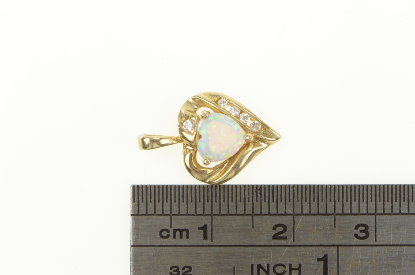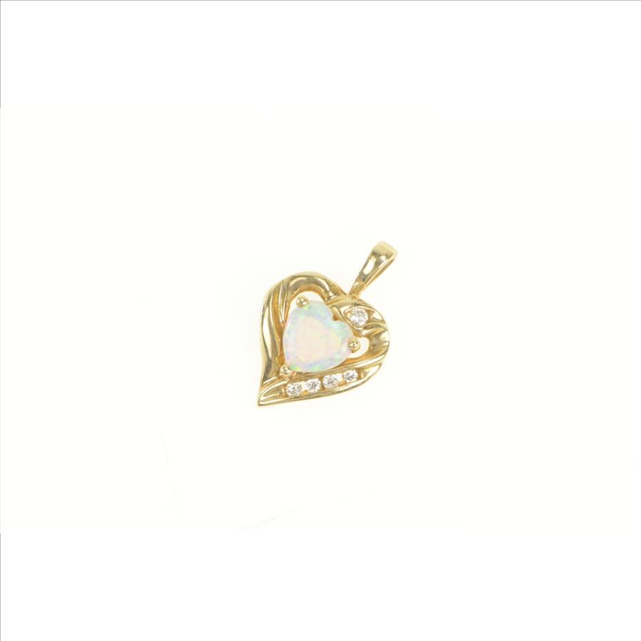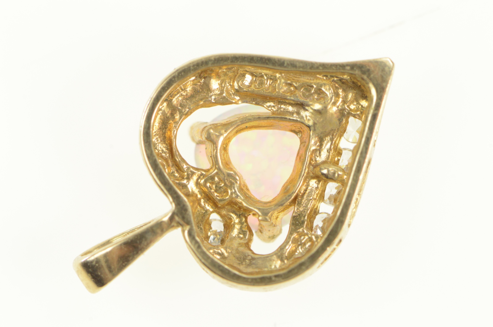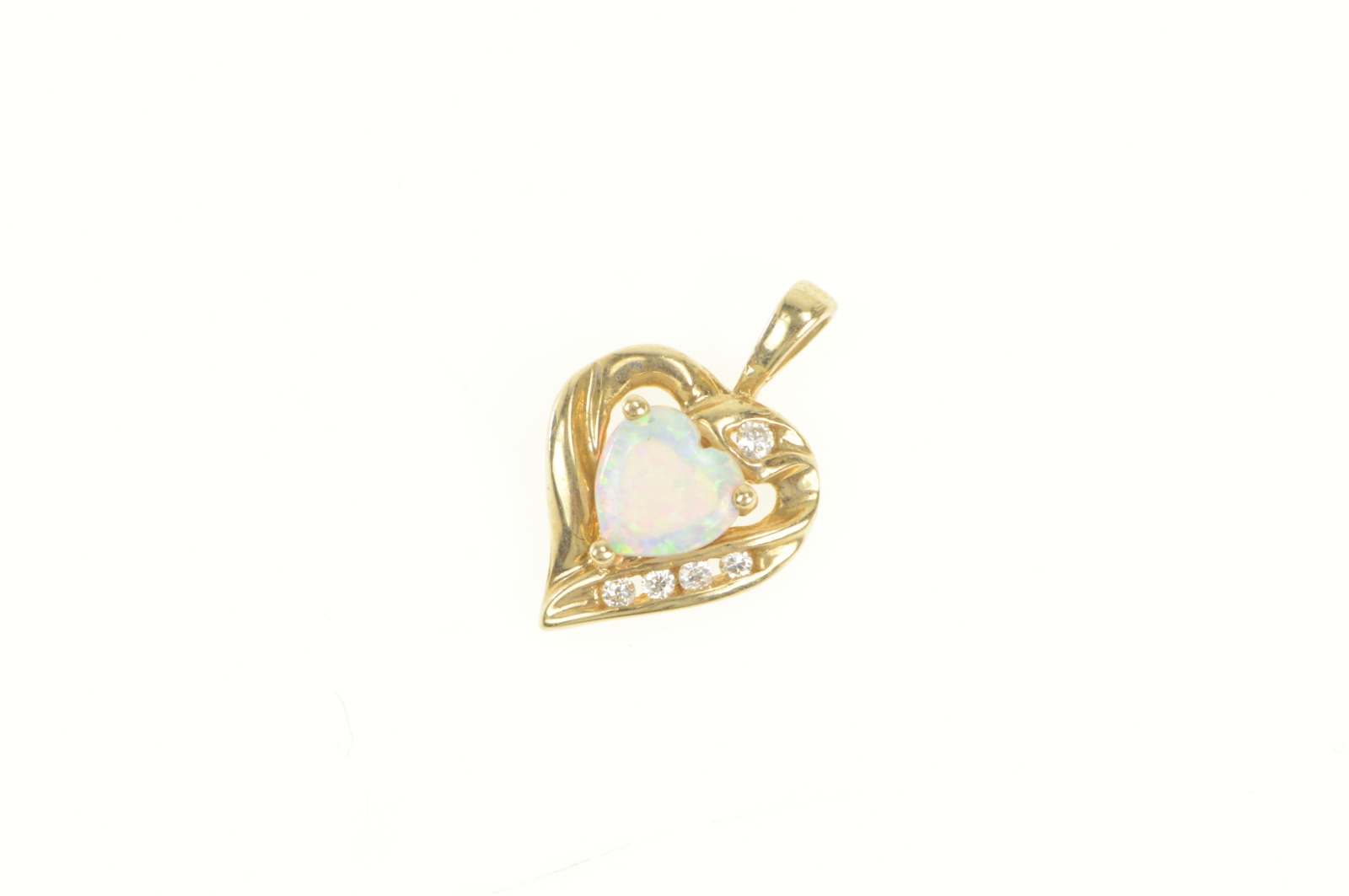 10K Heart Syn. Opal Diamond Love Symbol Yellow Gold Pendant