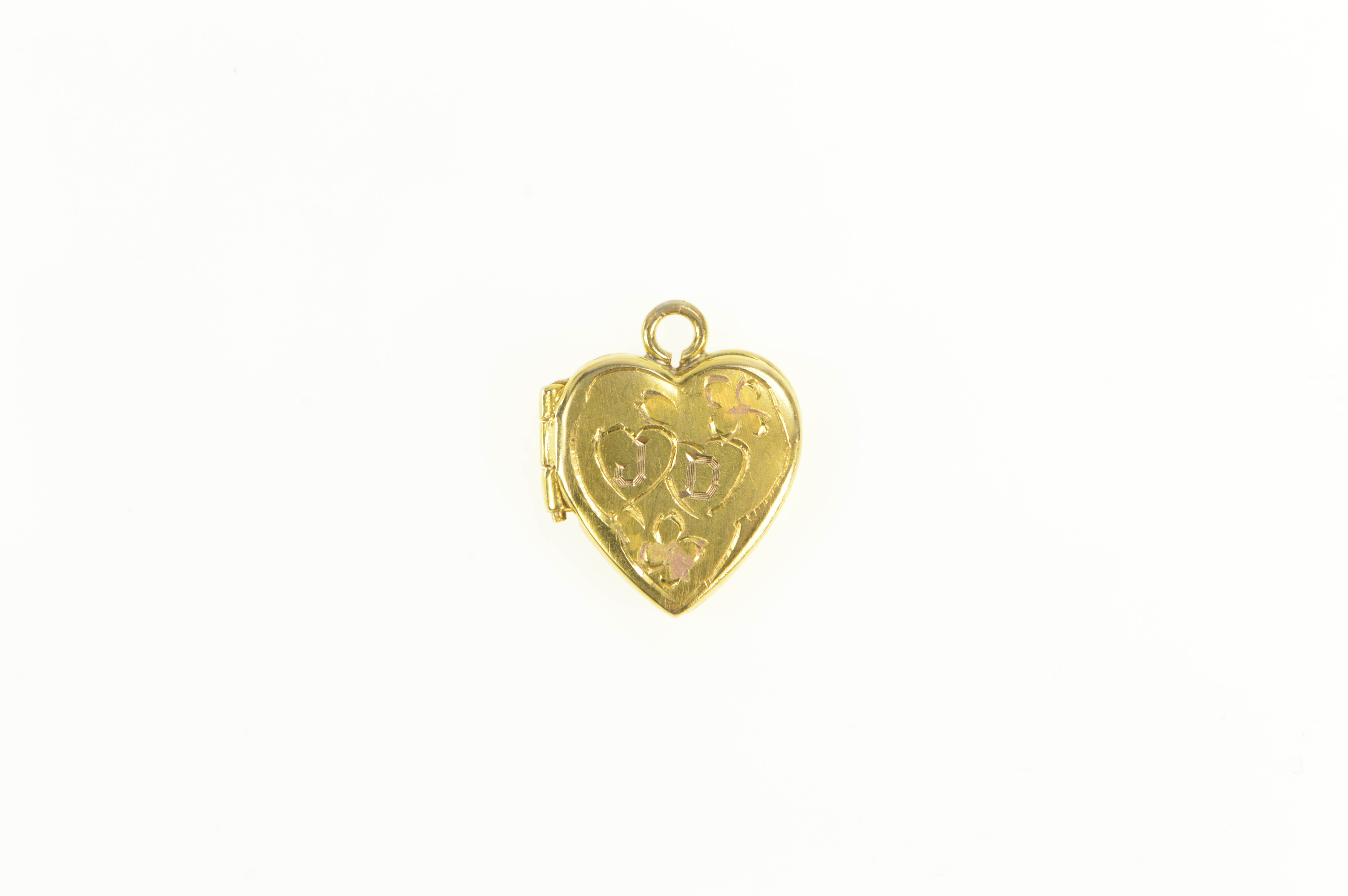 10K J D Monogram Name Initial Heart Photo Locket Yellow Gold Charm/Pendant