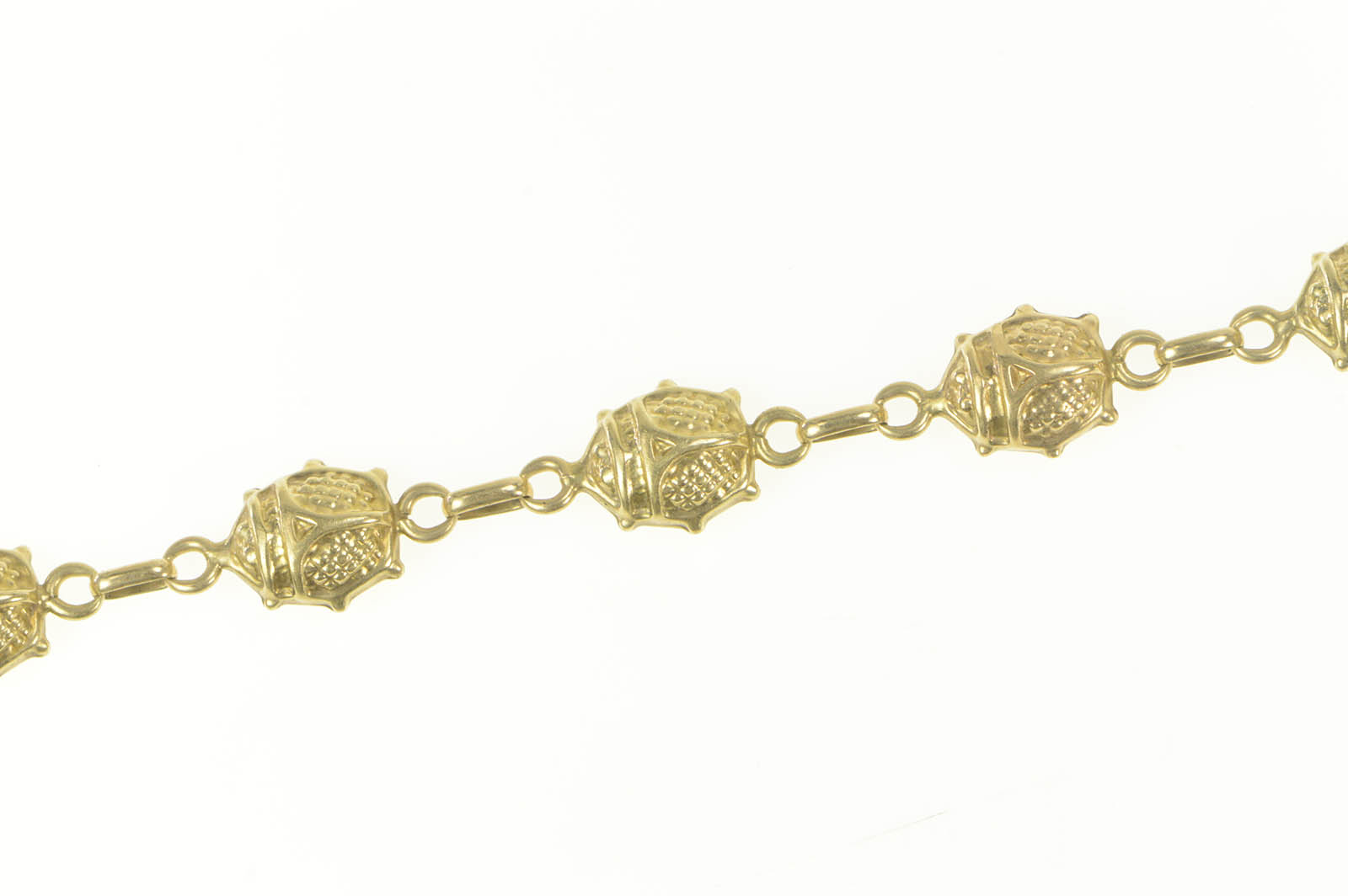 10K Ladybug 3D Good Luck Symbol Lucky Chain Yellow Gold Bracelet 7.25"