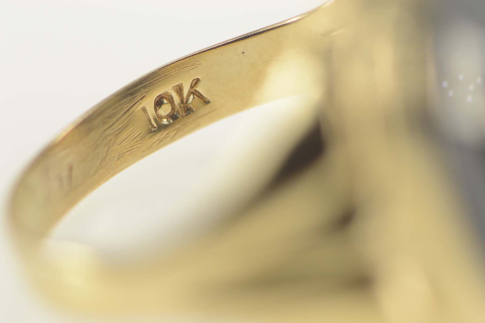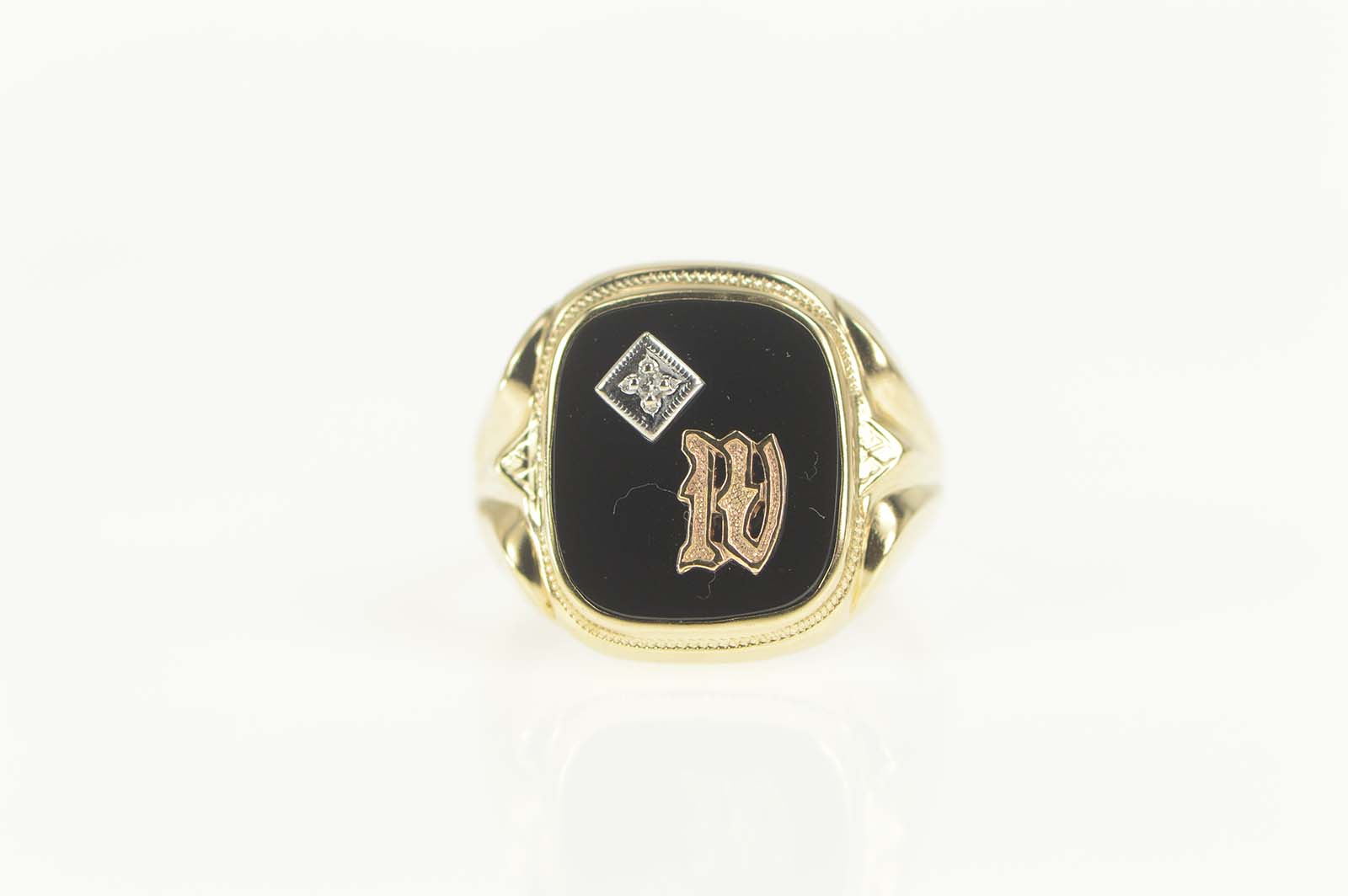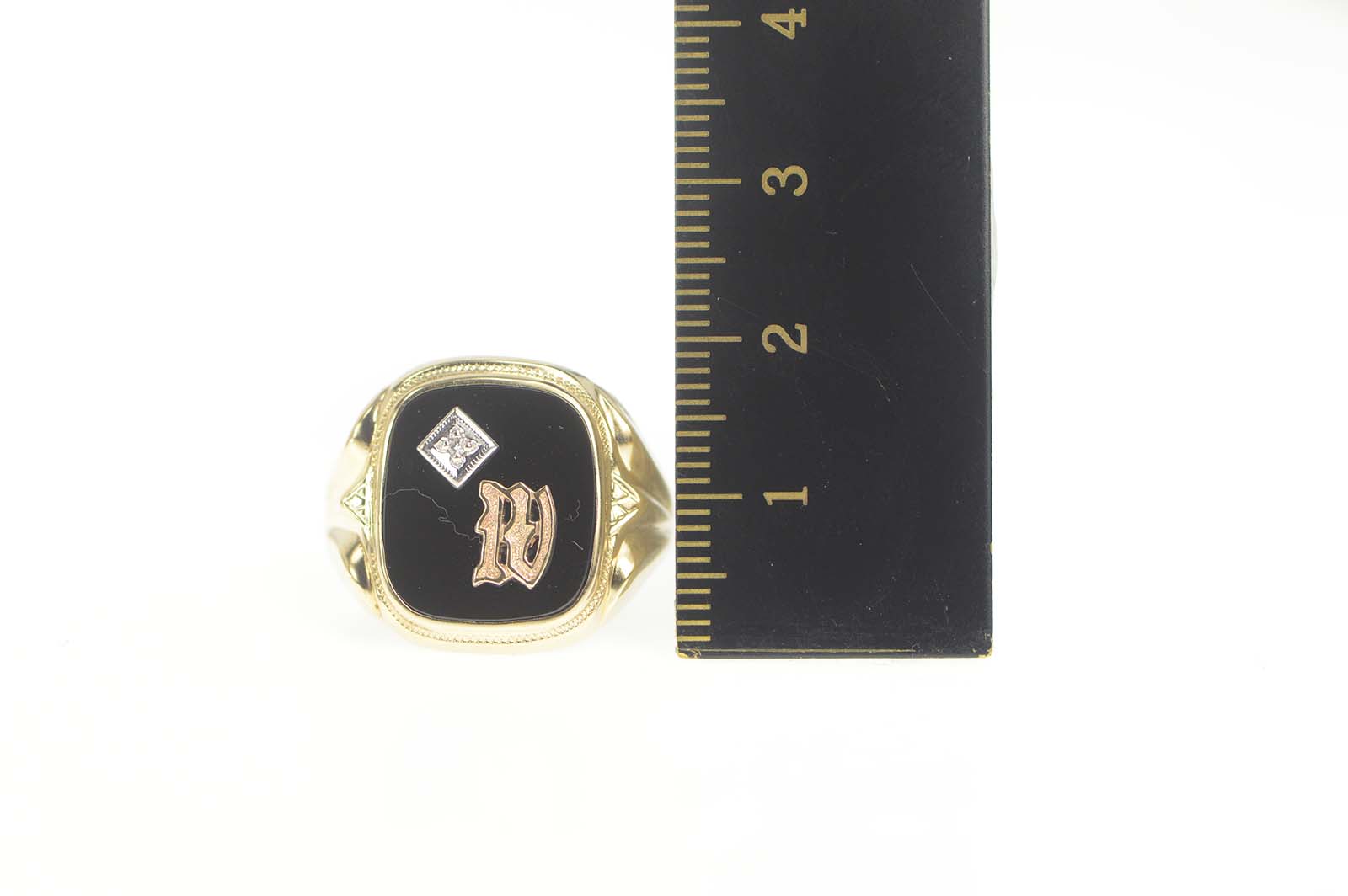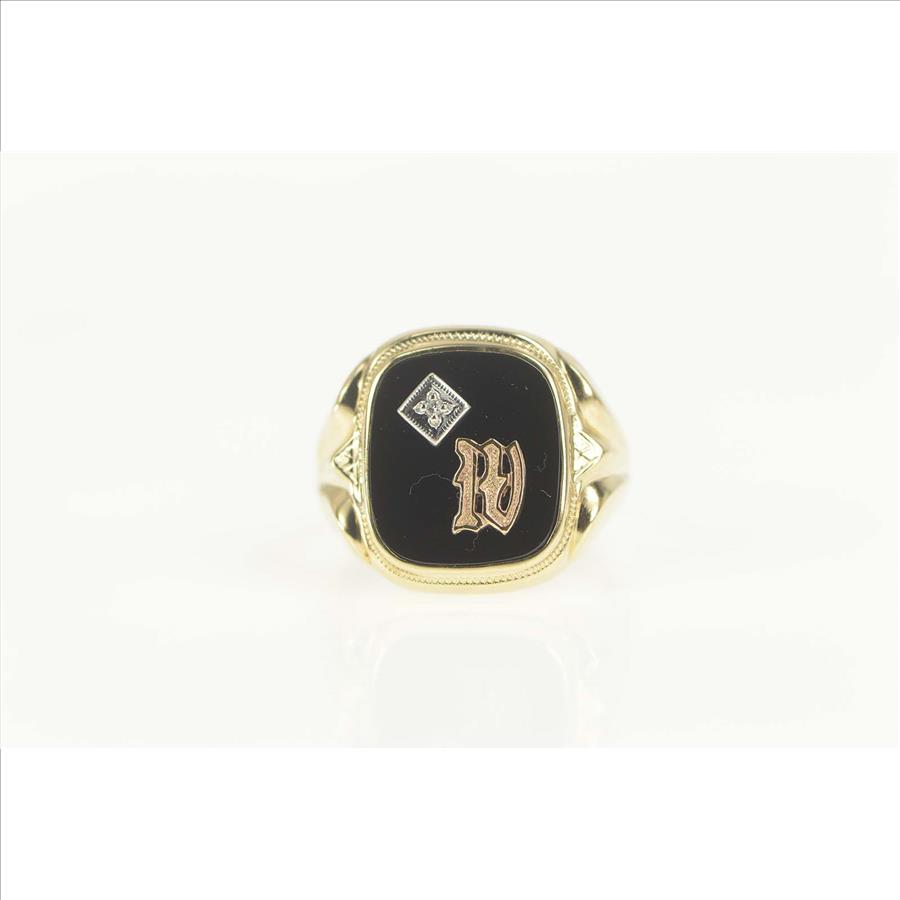 10K M W Monogram Diamond Black Onyx Retro Yellow Gold Ring, Size 10.25