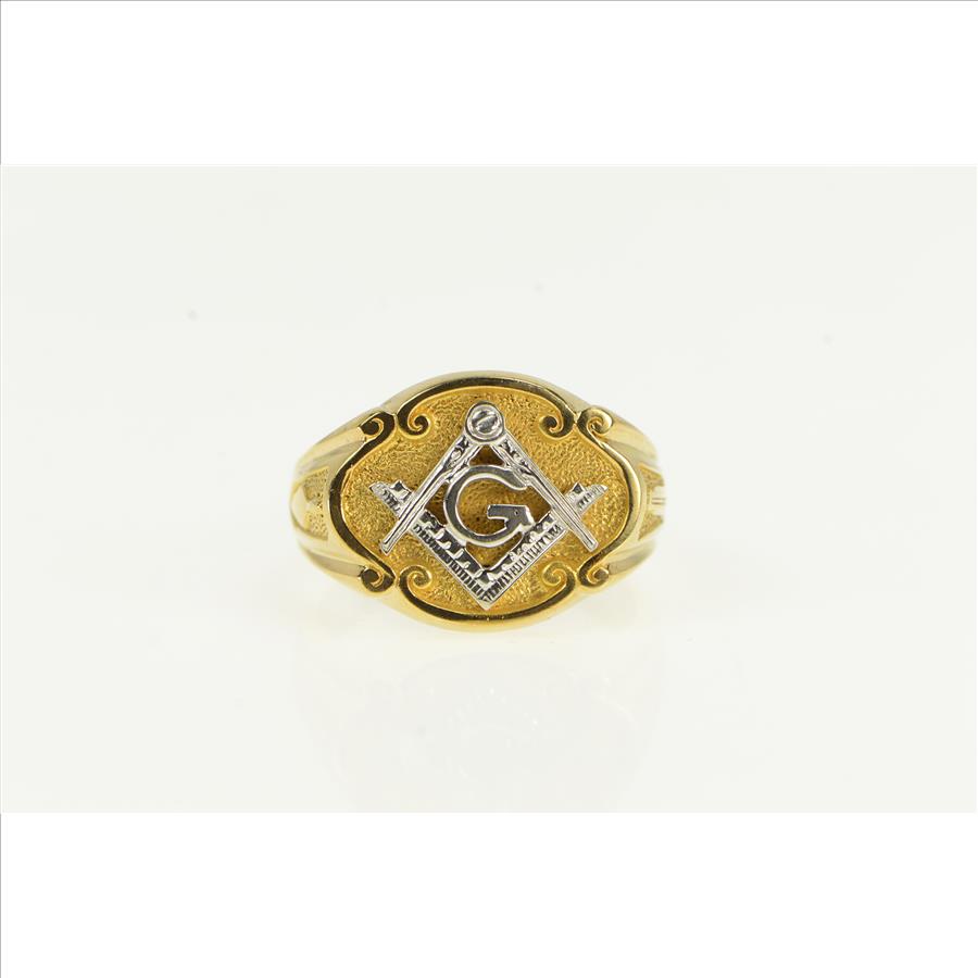 10K Ornate Masonic Compass Square Men's Yellow Gold Ring, Size 9.5