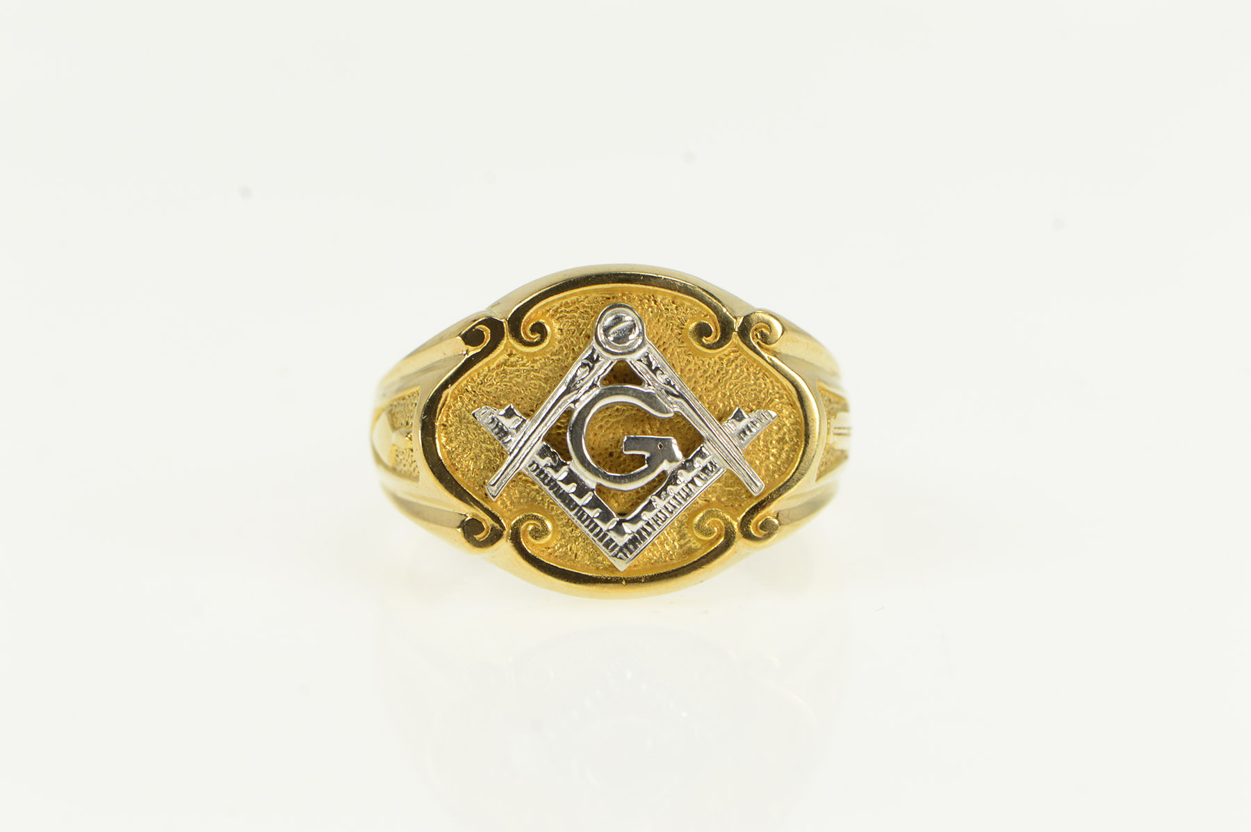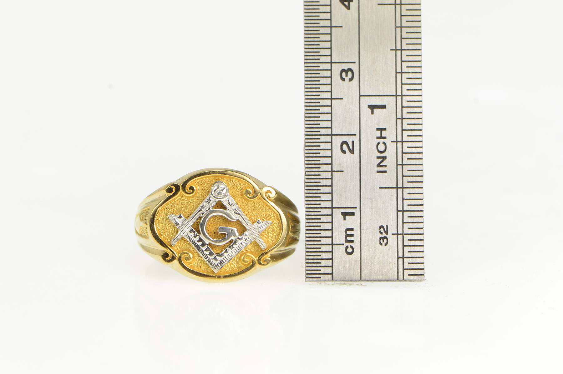Item:  10K Ornate Masonic Compass Square Men's Yellow Gold Ring, Size 9.5