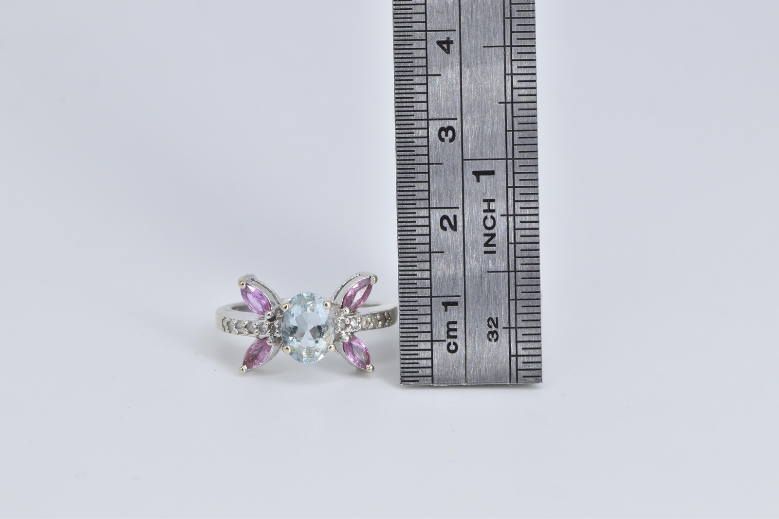 10K Oval Aquamarine Marquise Ruby Diamond White Gold Ring, Size 7