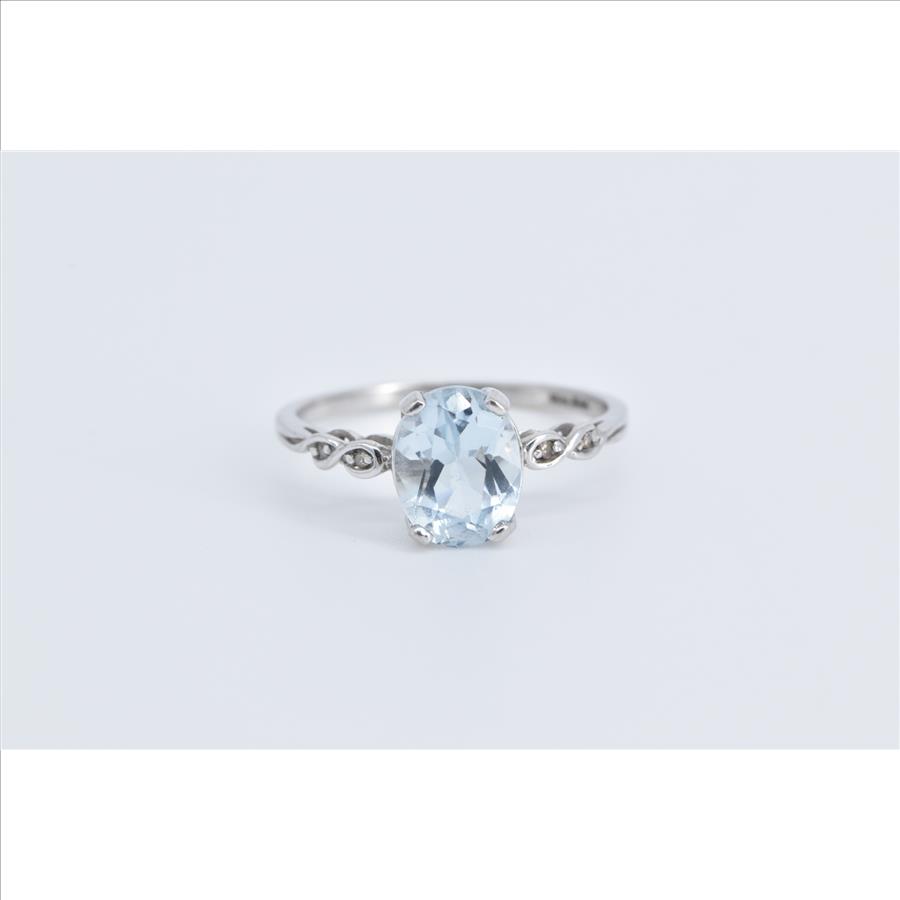 Item:  10K Oval Blue Topaz Diamond Accent Statement White Gold Ring, Size 7