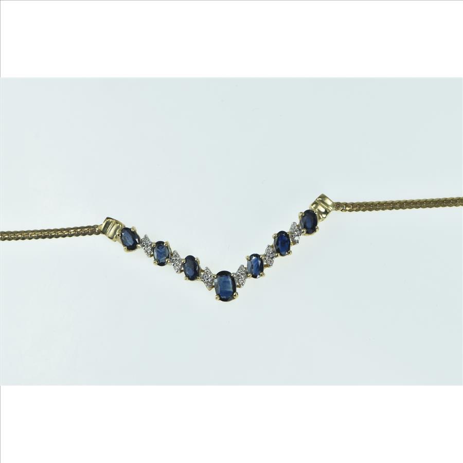 10K Oval Sapphire Diamond Vintage Chevron Yellow Gold Necklace 17.75"