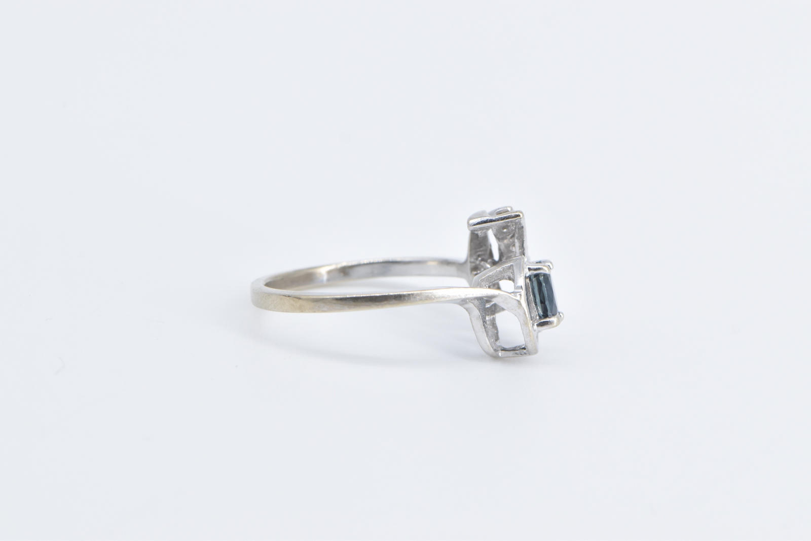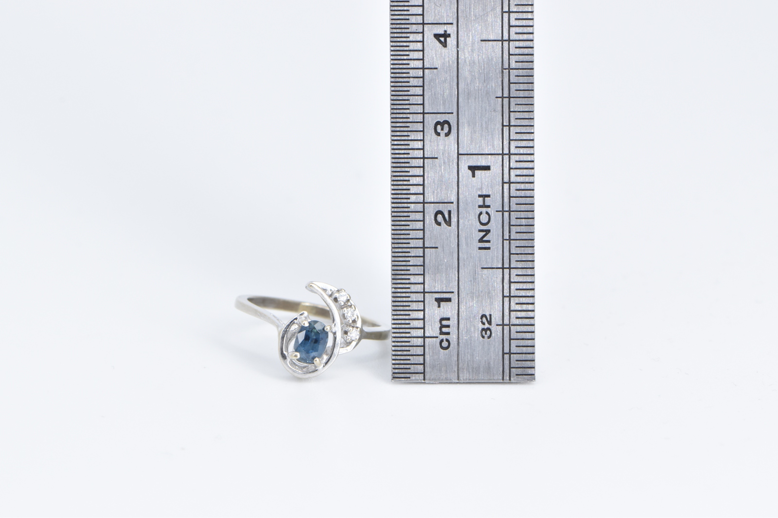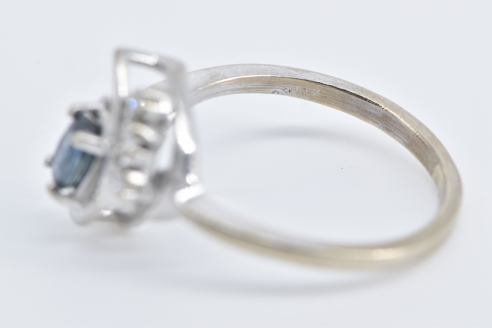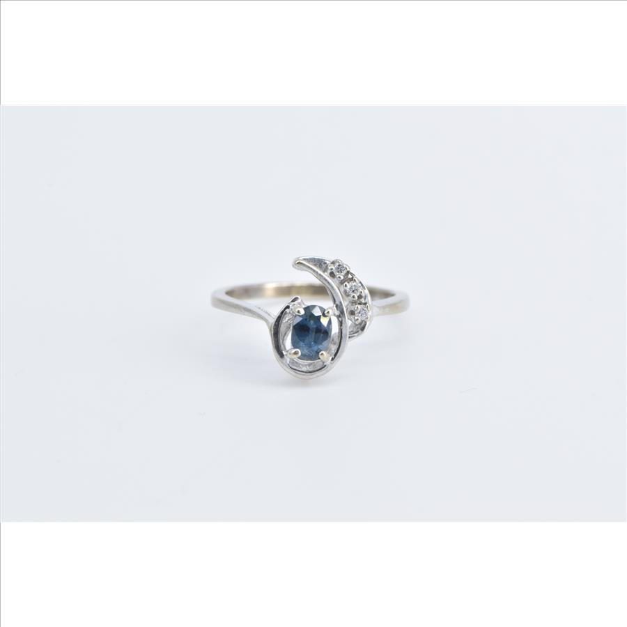 Item:  10K Oval Sapphire Diamond Wavy Engagement White Gold Ring, Size 4.75