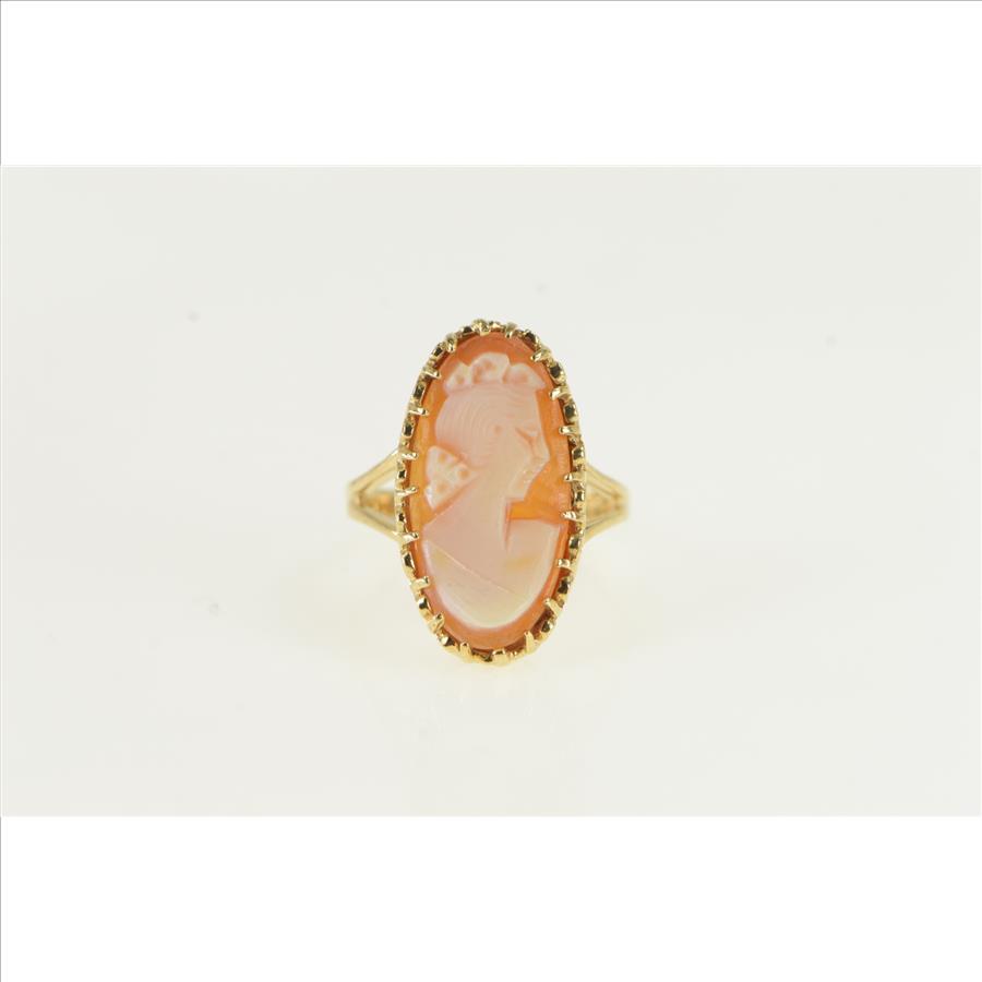 Item:  10K Oval Vintage Carved Shell Cameo Yellow Gold Ring, Size 6