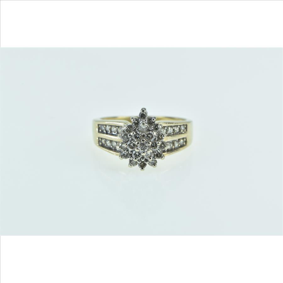 Item:  10K Pear Diamond Cluster Vintage Statement Yellow Gold Ring, Size 8.25