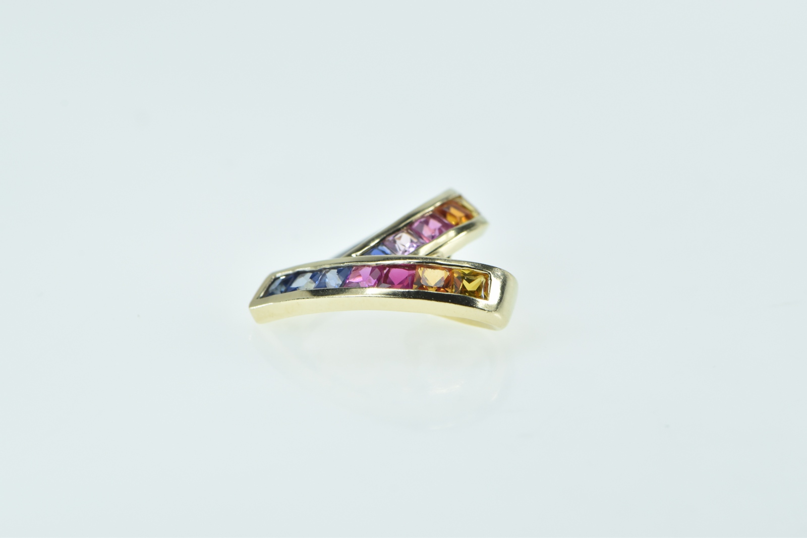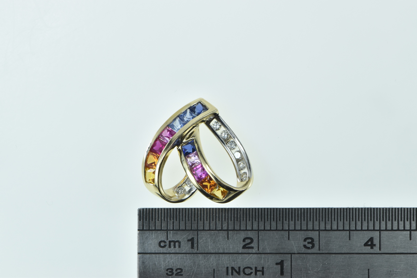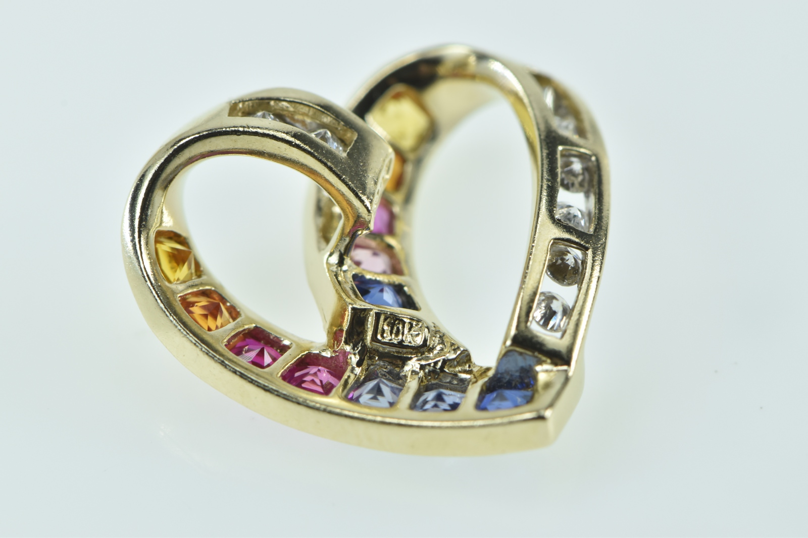 Item:  10K Rainbow Sapphire Diamond Heart Loop Yellow Gold Pendant