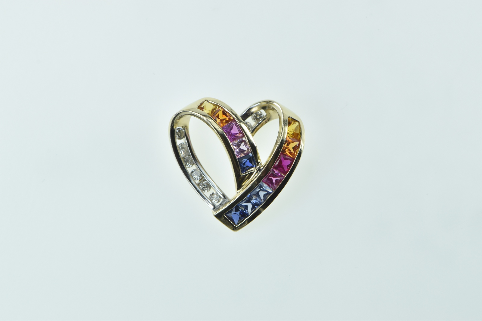 10K Rainbow Sapphire Diamond Heart Loop Yellow Gold Pendant