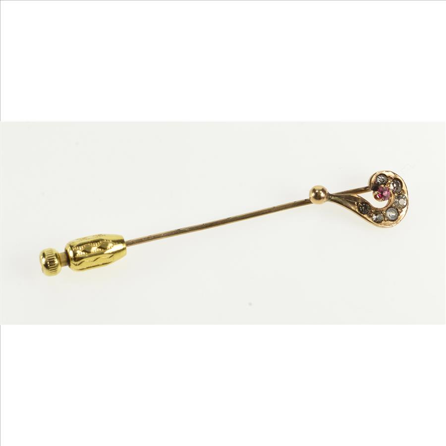 10K Rhinestone Inset Victorian Question Mark Curve Yellow Gold Stick Pin