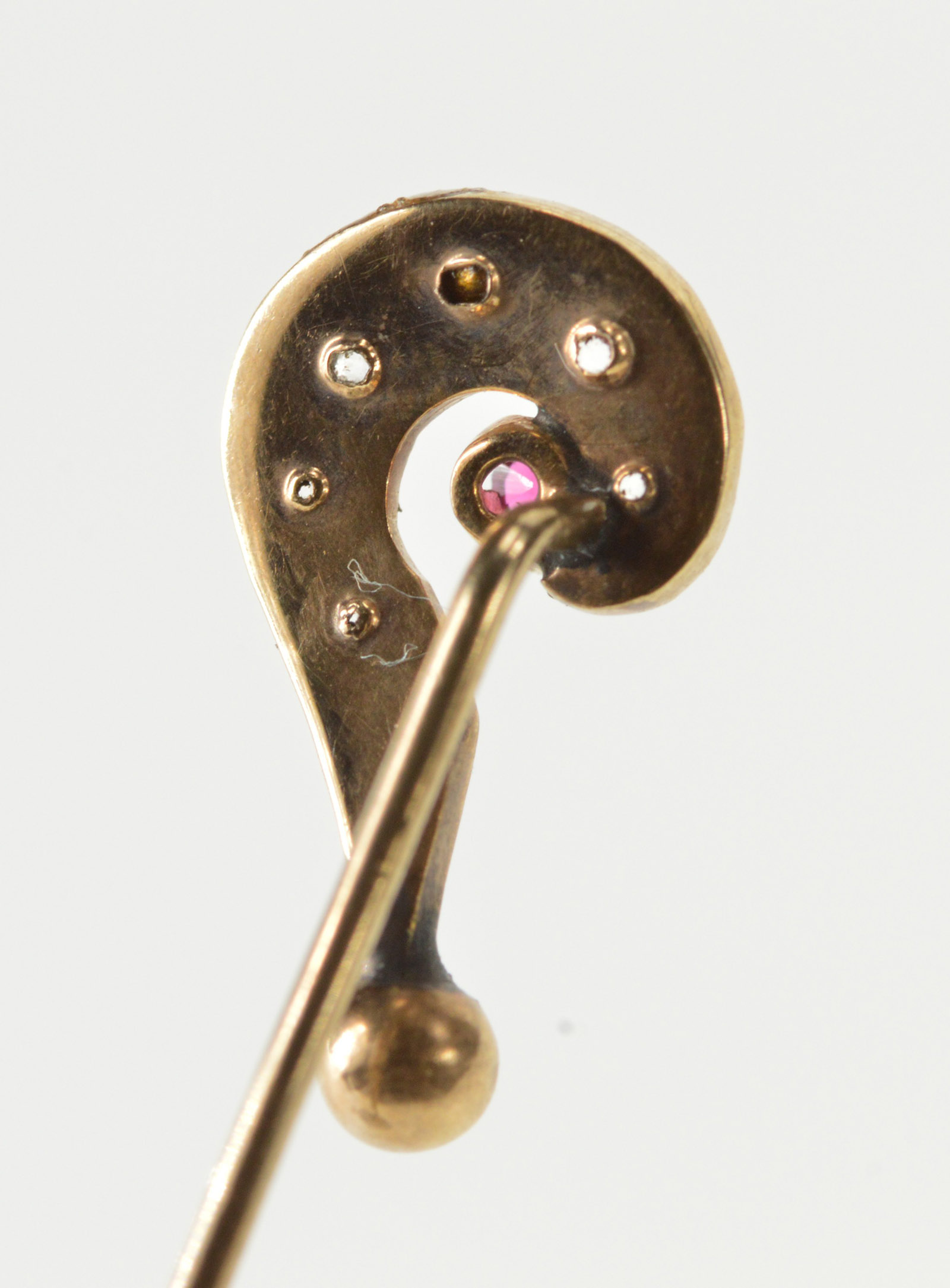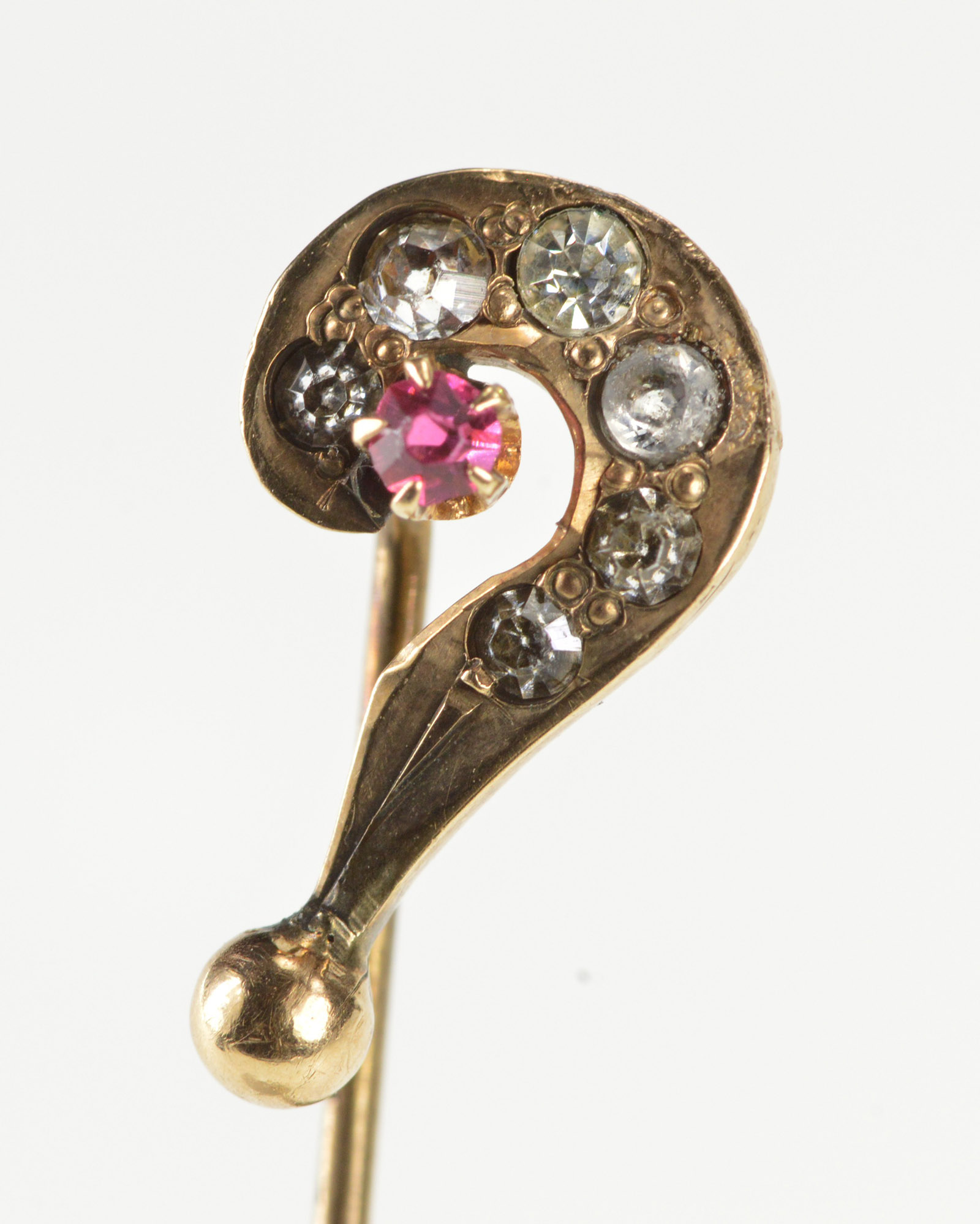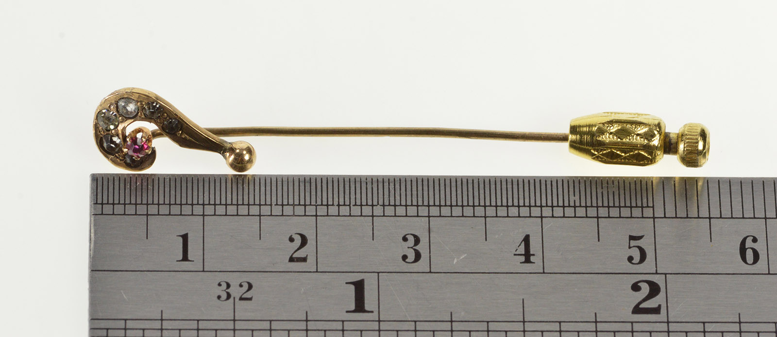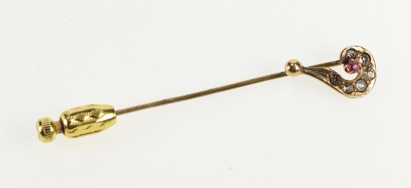 Item:  10K Rhinestone Inset Victorian Question Mark Curve Yellow Gold Stick Pin