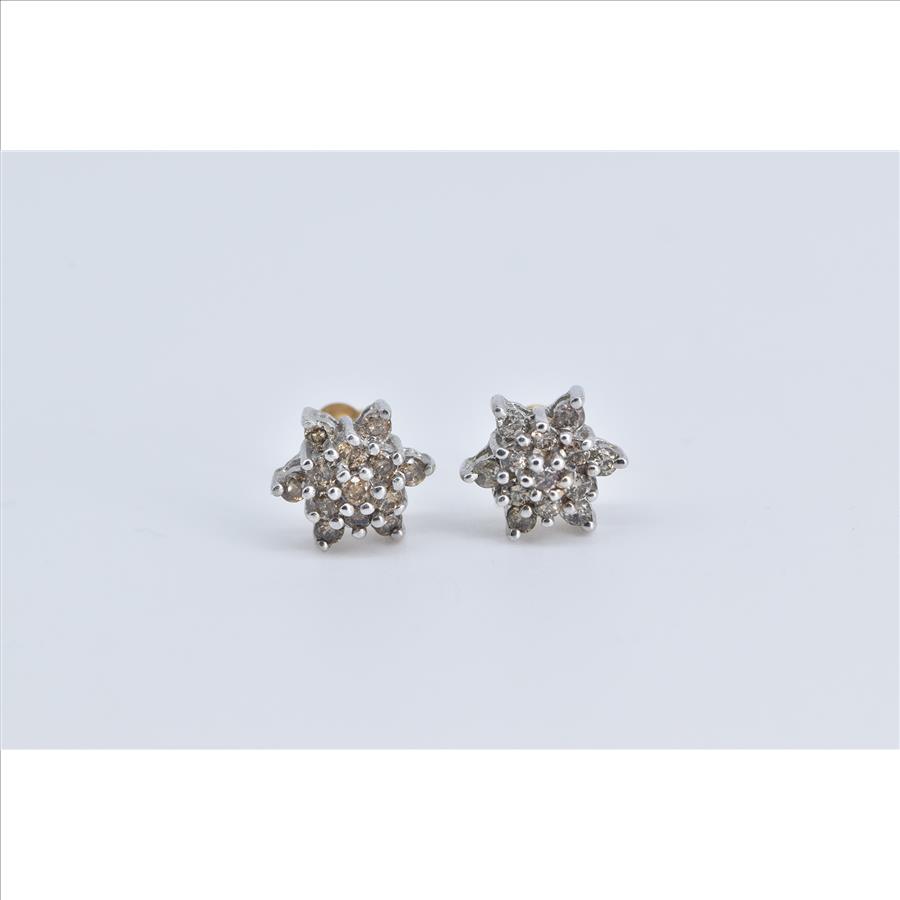10K Round Diamond Flower Round Cluster Stud White Gold Earrings
