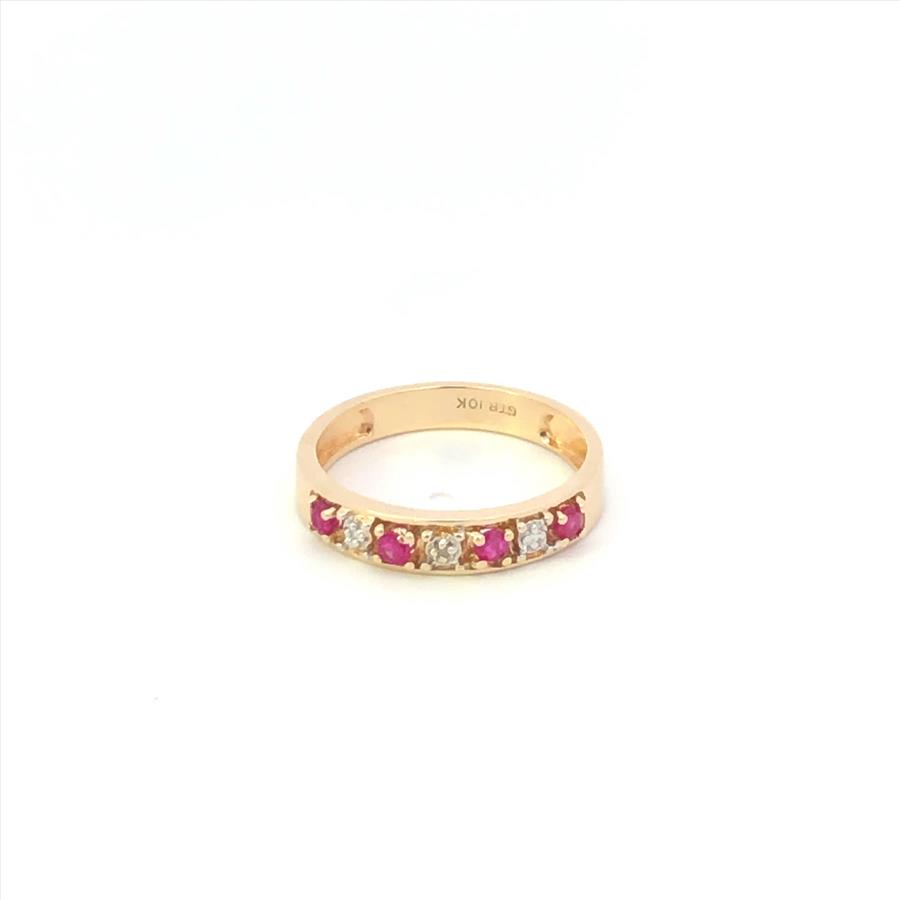 Item:  10K Ruby Diamond Classic Vintage Wedding Band Yellow Gold Ring, Size 6.75