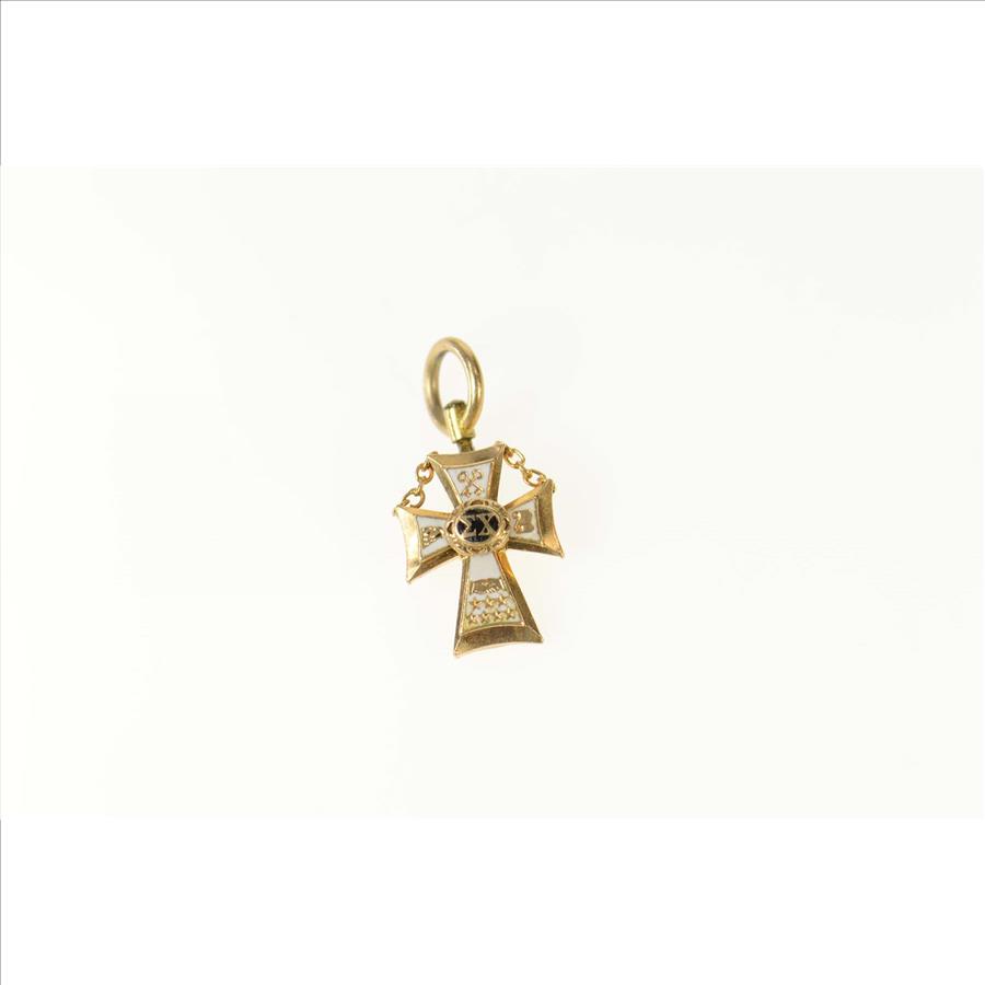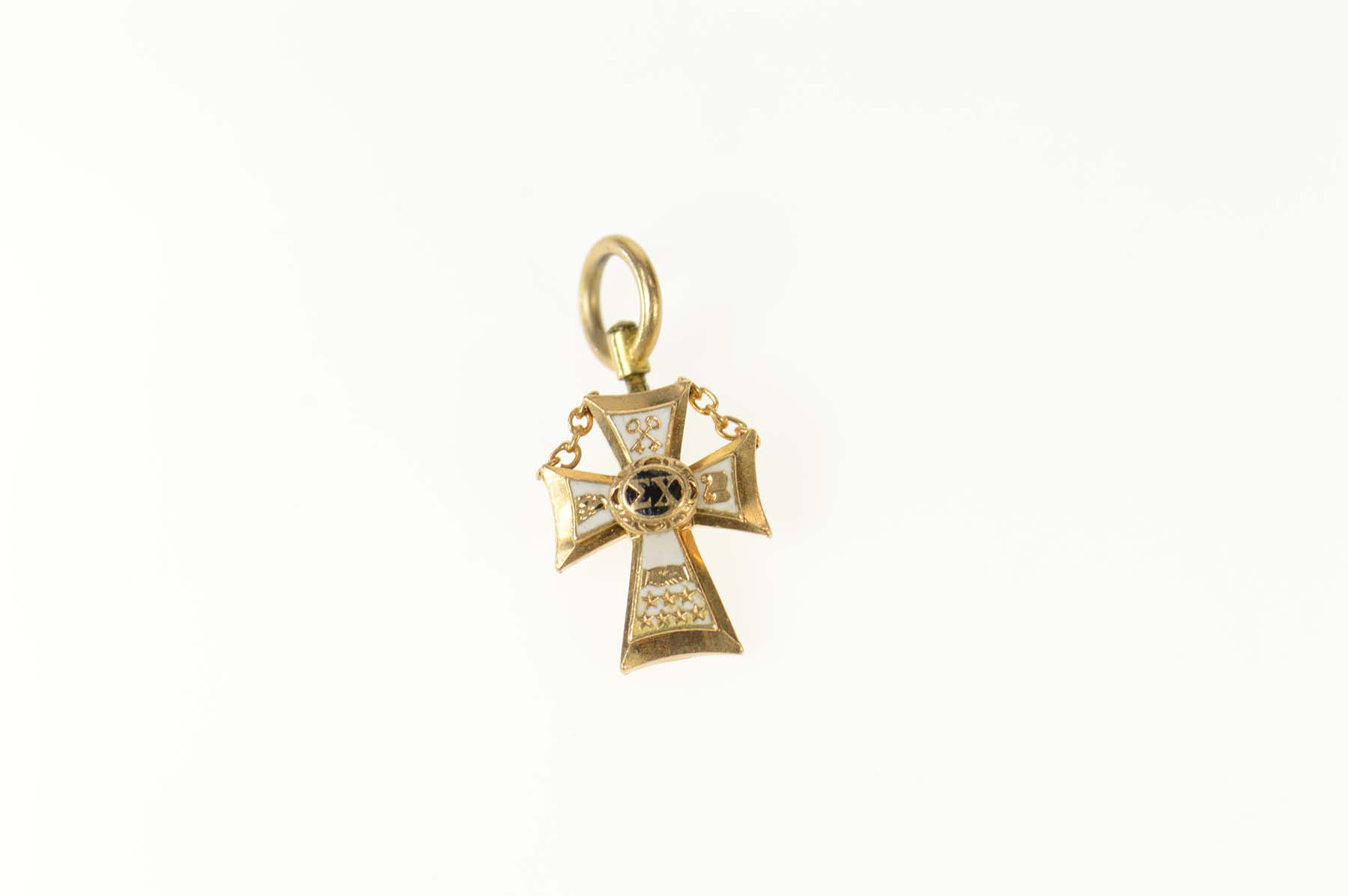 Item:  10K Sigma Chi Fraternity Art Deco Enamel Lapel Yellow Gold Pin/Brooch