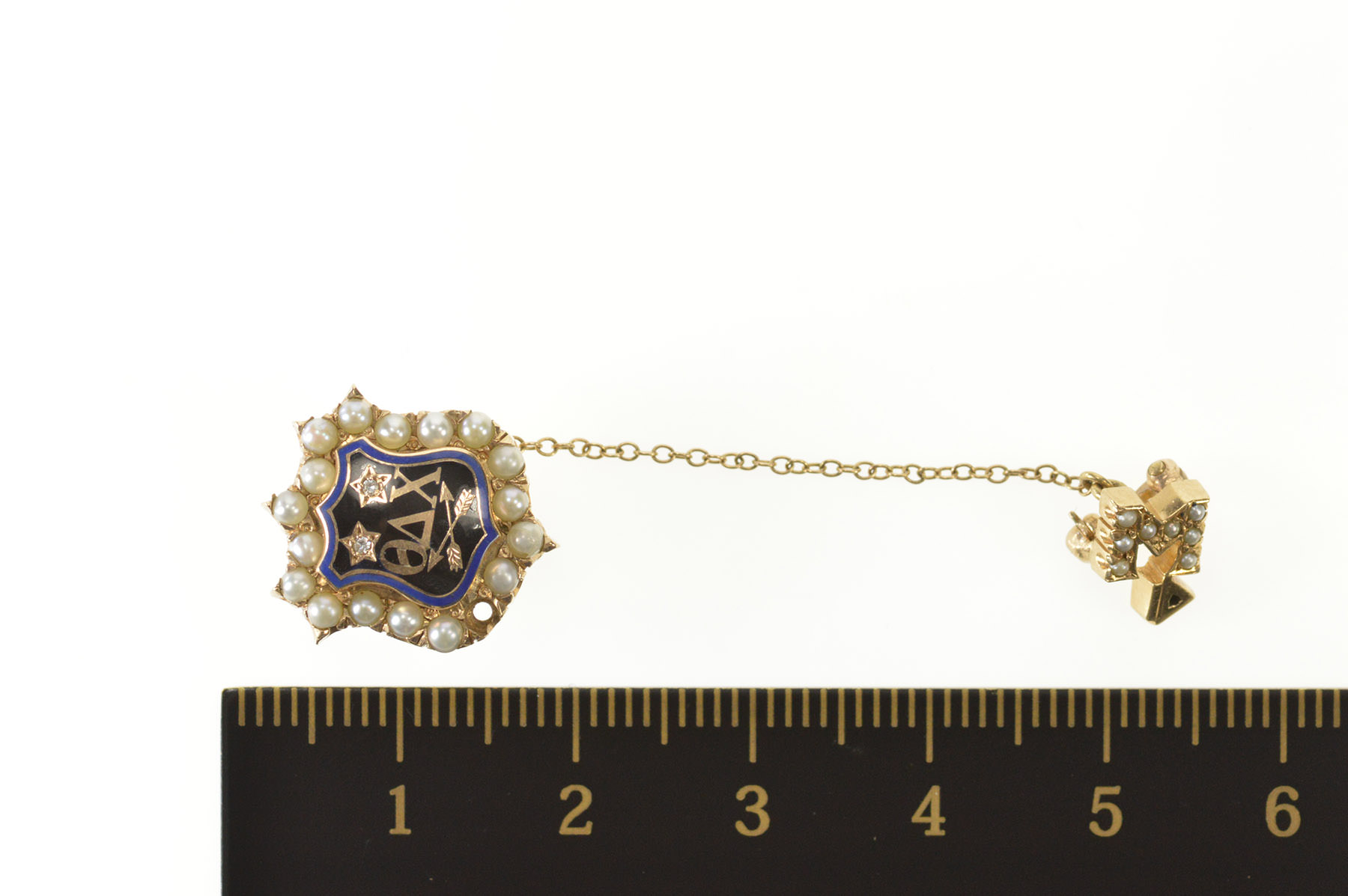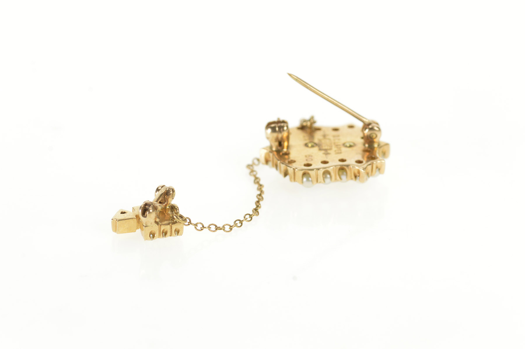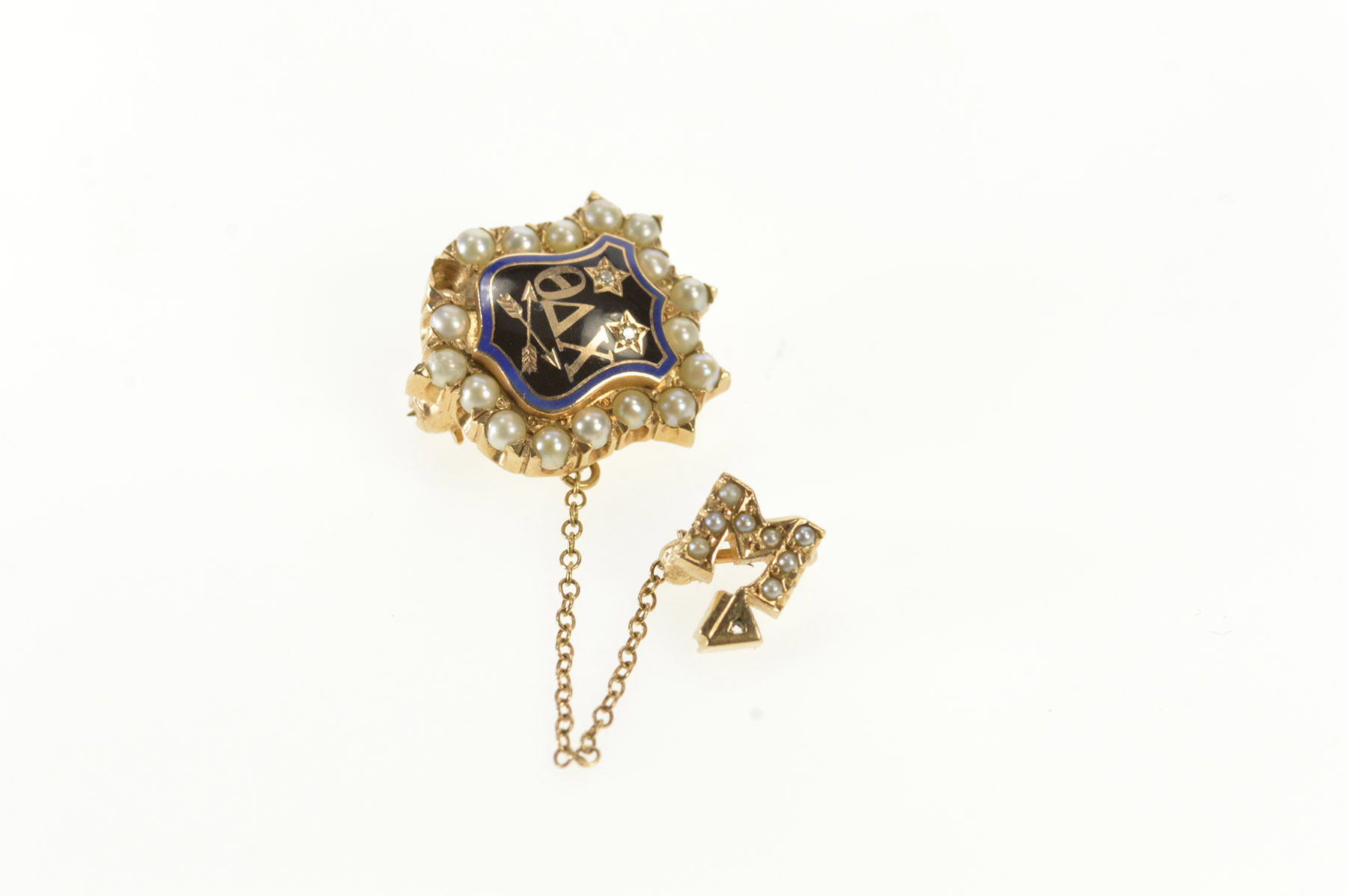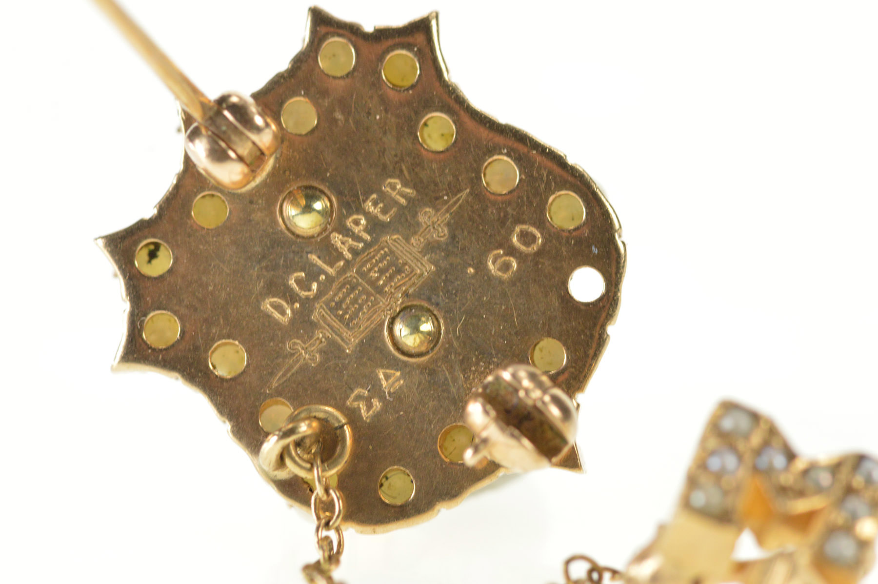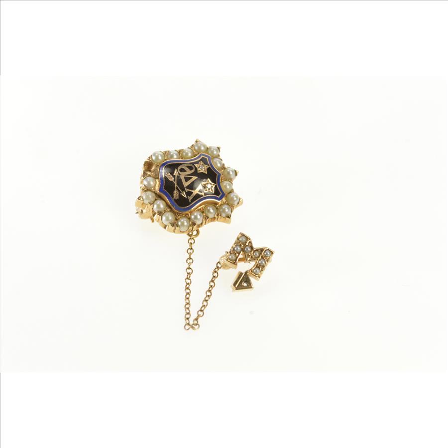 Notes:  This pin is engraved on the back: "DC Laper '60" and is missing a single seed pearl