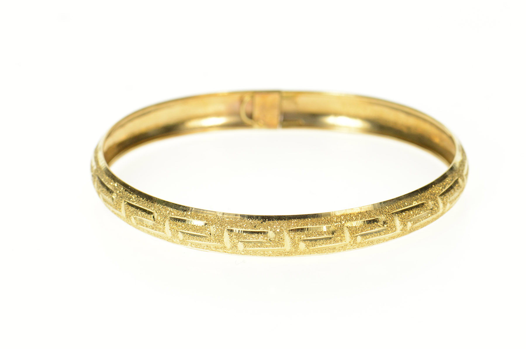 Item:  10K Textured Greek Wave Pattern Oval Bangle Yellow Gold Bracelet 7.25"
