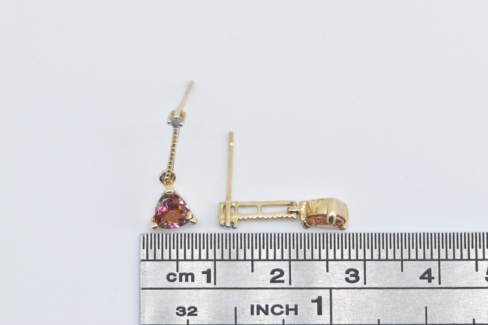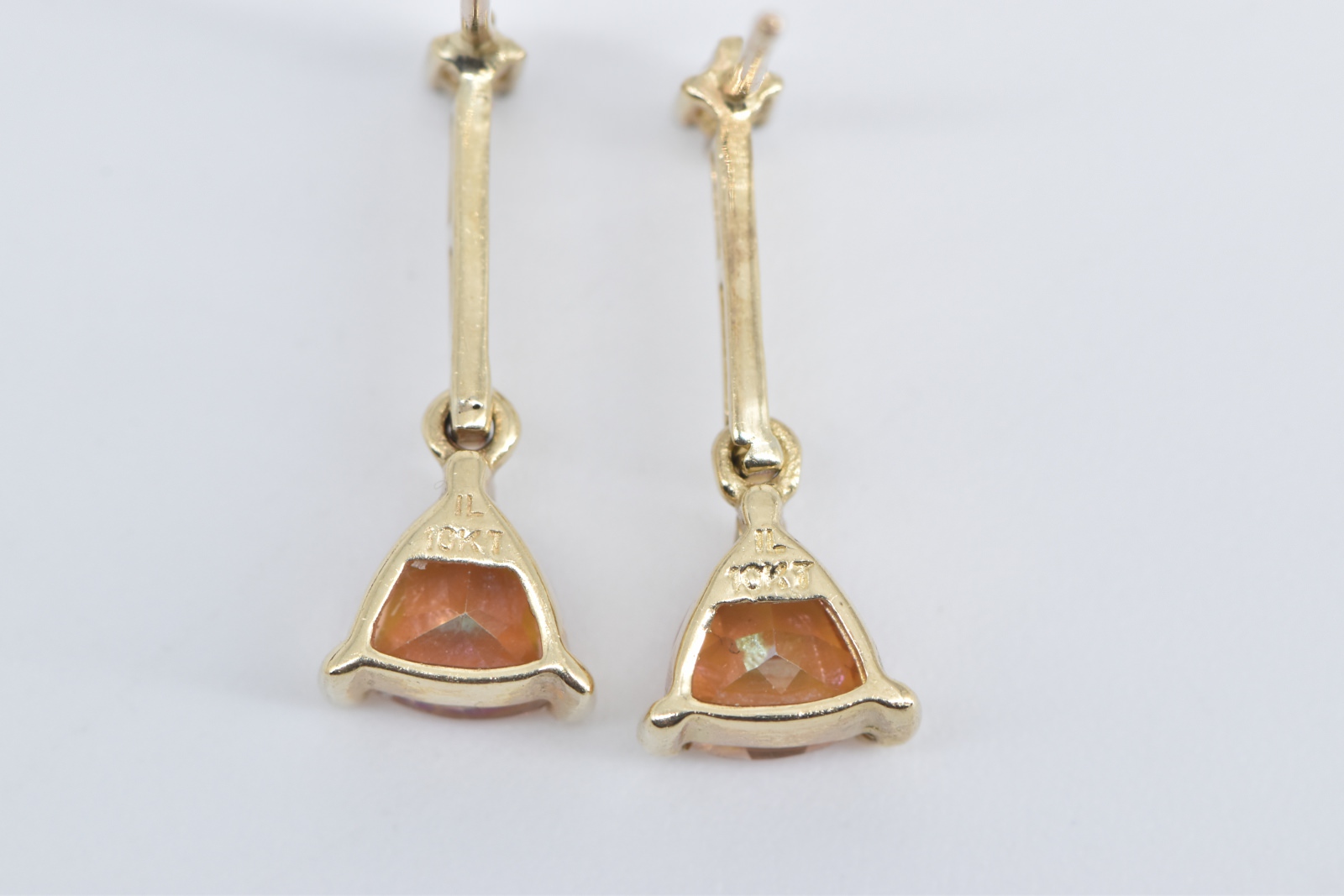 Item:  10K Trillion Peach Mystic Topaz Diamond Drop Dangle Yellow Gold Earrings