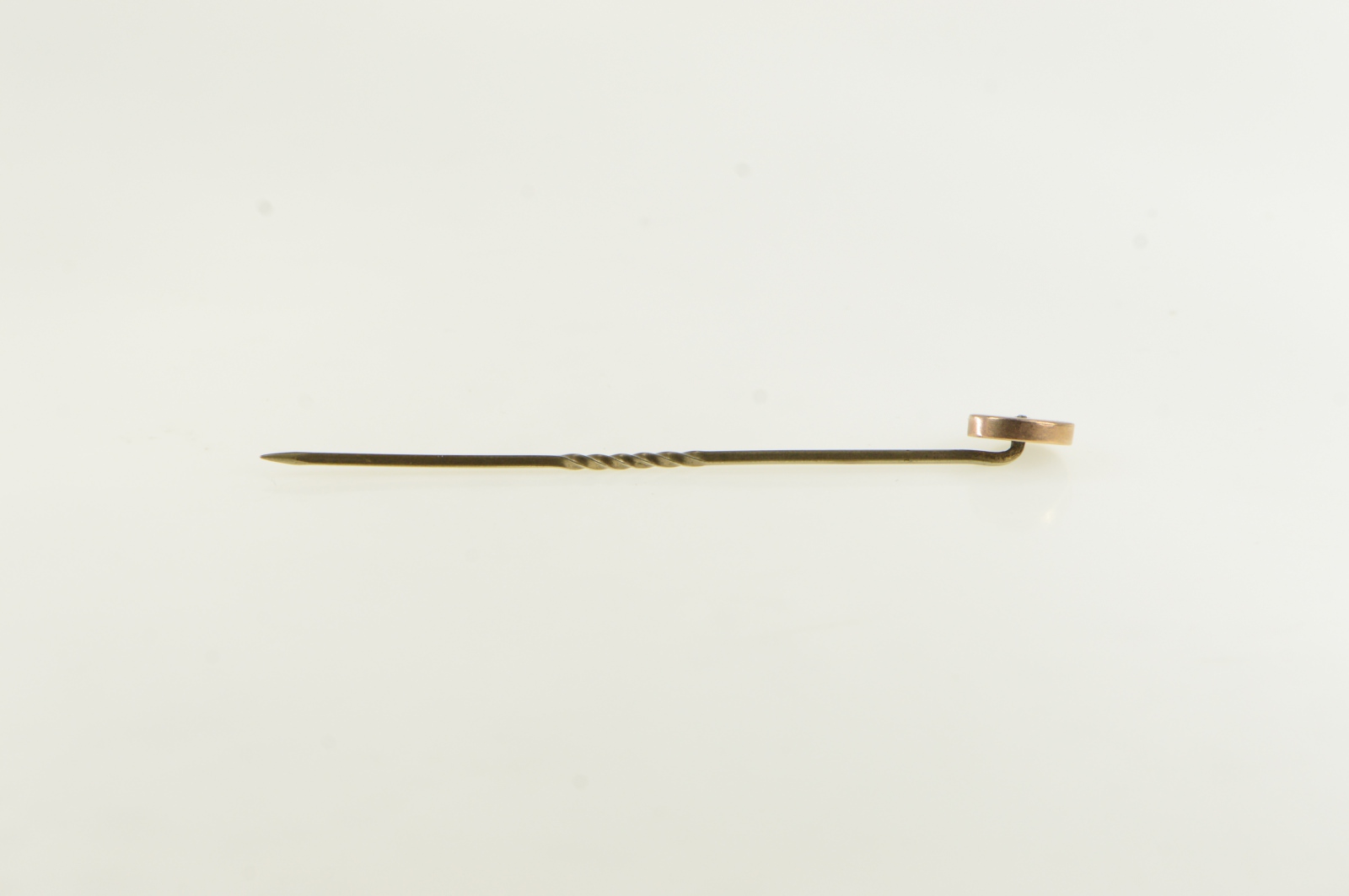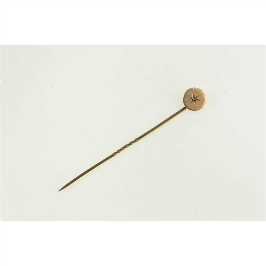 Item:  10K Victorian Diamond Round Circle Yellow Gold Stick Pin