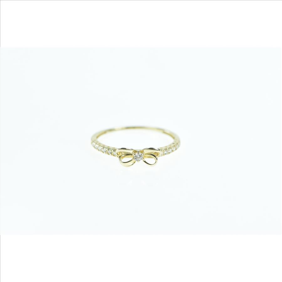 10K Vintage Bow Ribbon Promise CZ Yellow Gold Ring, Size 7.25