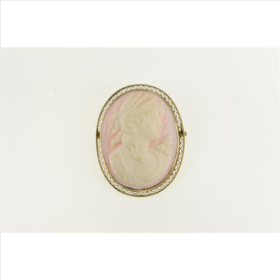 Item:  10K Vintage Carved Coral Lady Cameo Yellow Gold Pin/Brooch