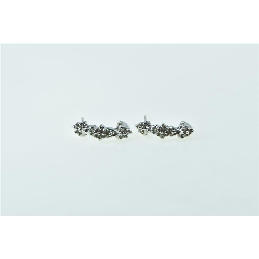 10K Vintage Diamond Cluster Curved Bar Fashion White Gold Earrings