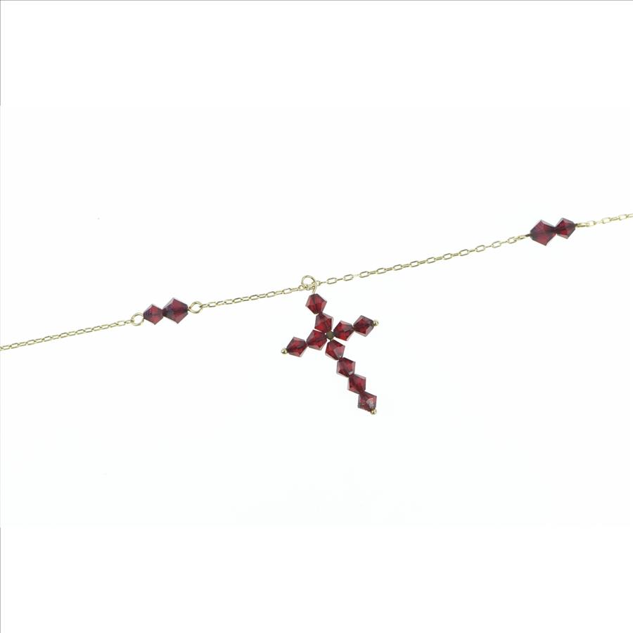 Item:  10K Vintage Sim. Garnet Cross Christian Yellow Gold Necklace 16.5"