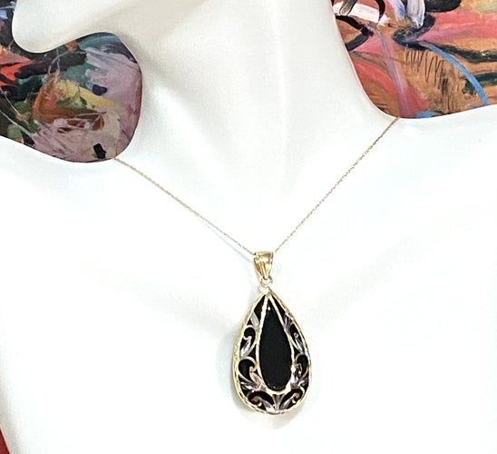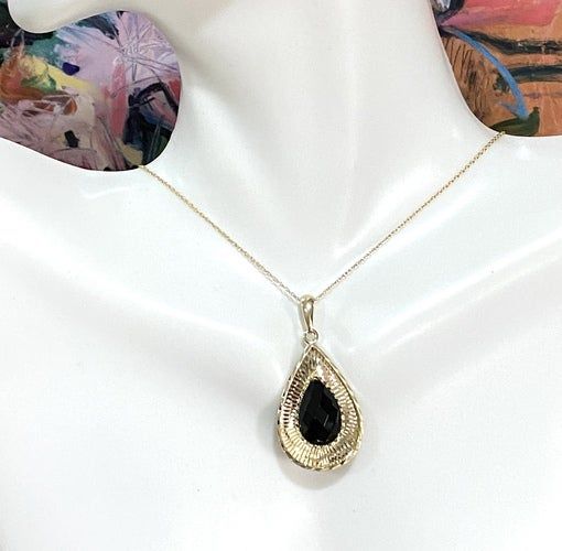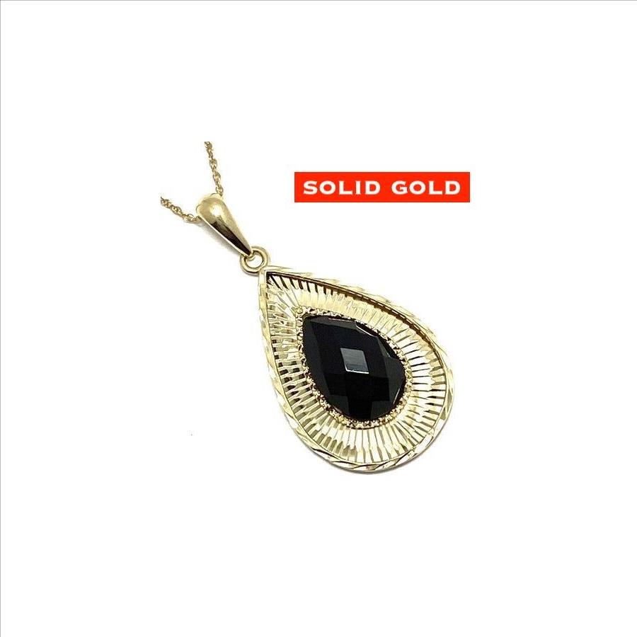 10k Yellow Gold, 4.25ct Genuine Black Onyx Pendant Necklace