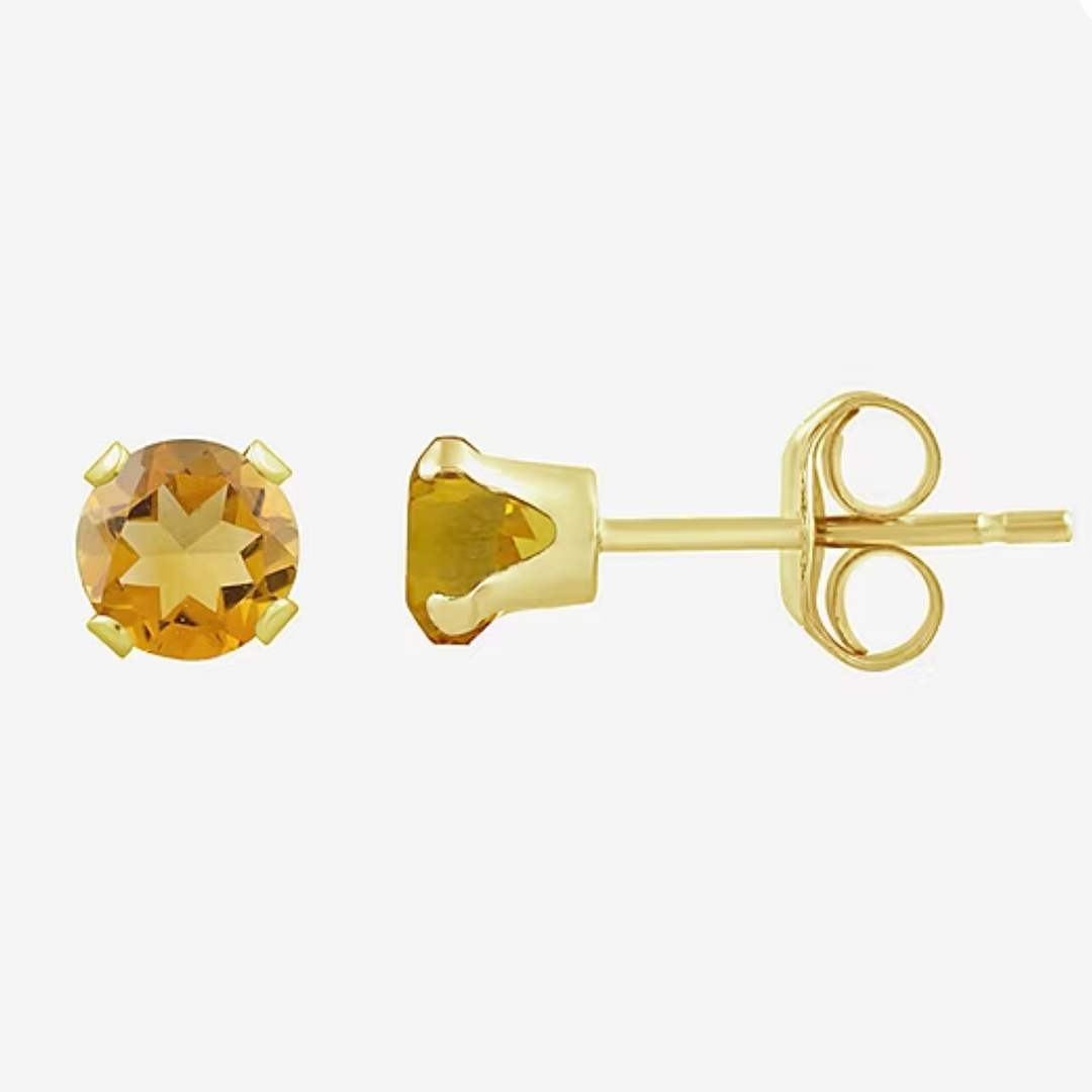 10k Yellow Gold, 4mm Citrine Stud Earrings
