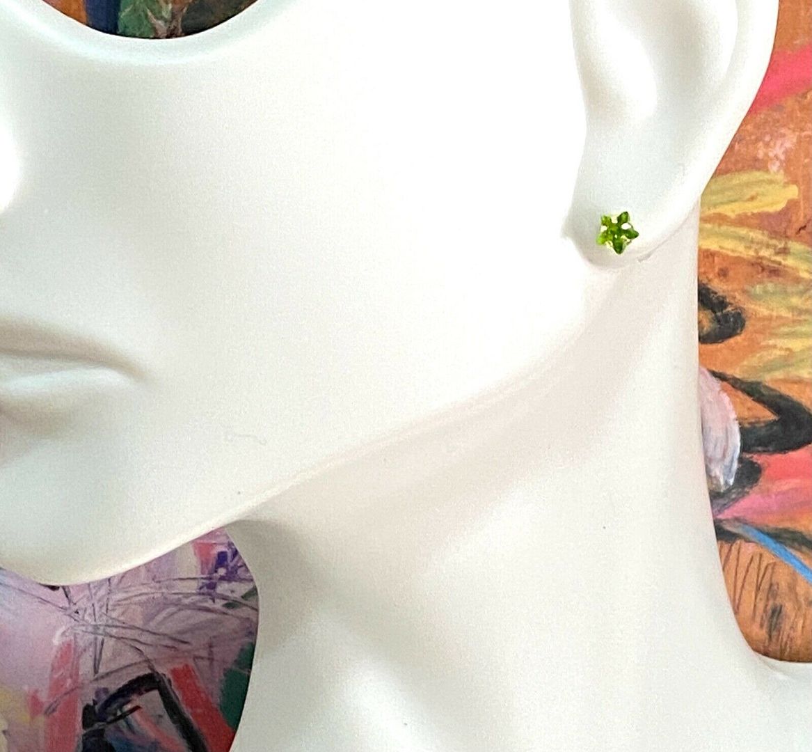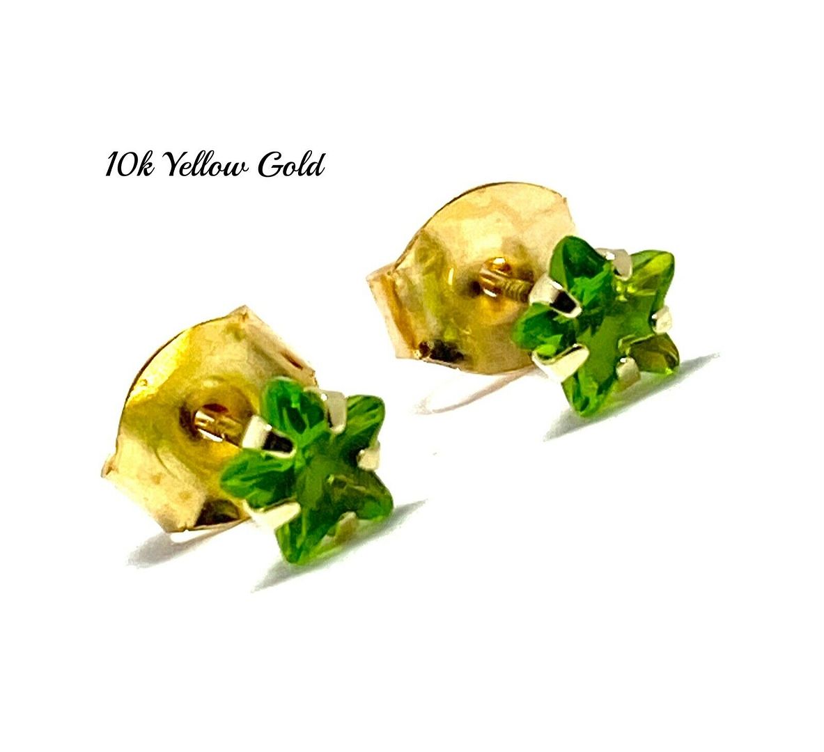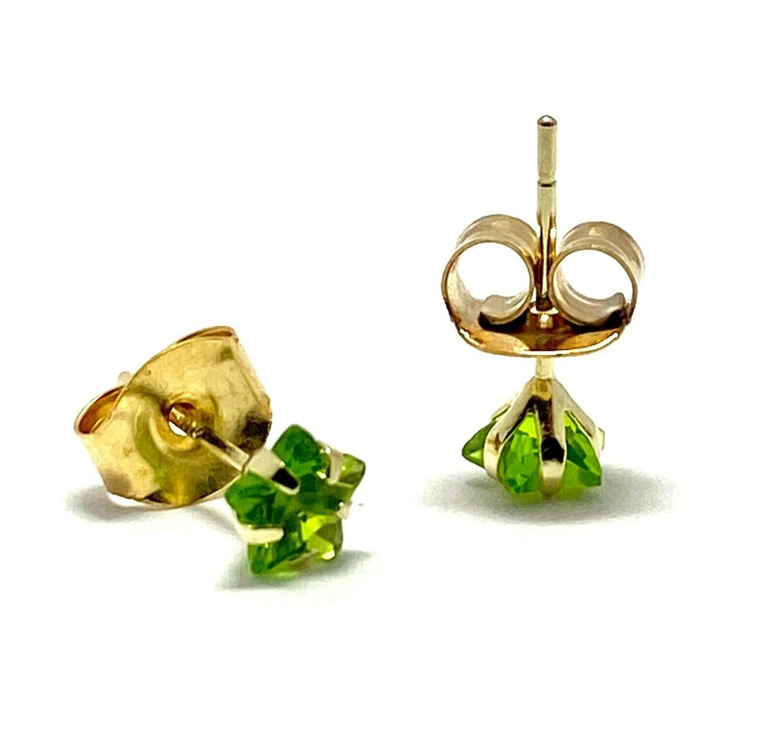 10k Yellow Gold 4mm Star Cut Peridot Stud Earrings Beautifully Dainty