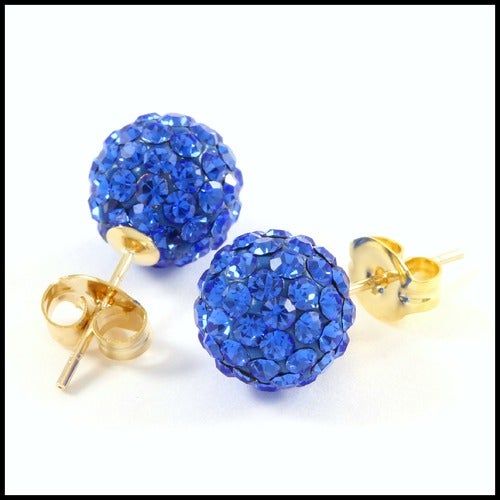 10k Yellow Gold Blue Crystal 8mm in Diameter Stud Earrings