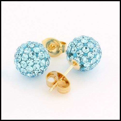 10k Yellow Gold Light Blue Crystal 8mm in Diameter Stud Earrings