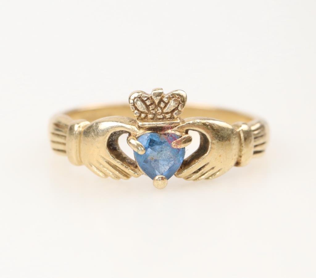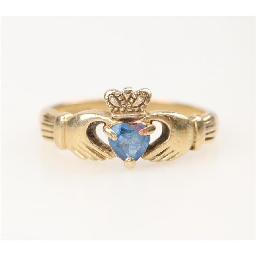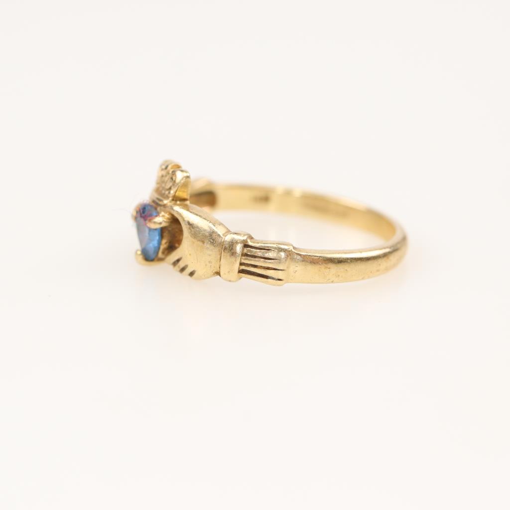 10kt Gold Blue Spinel Claddagh Ring